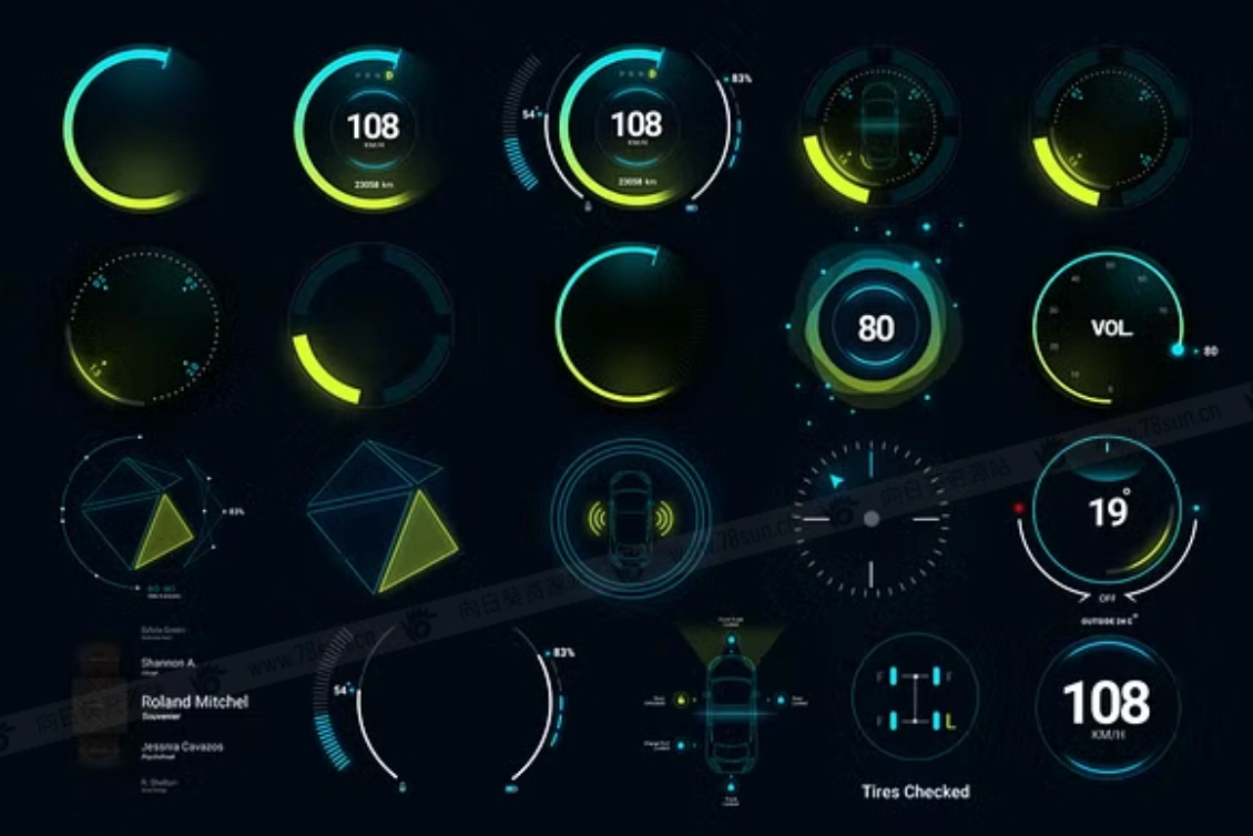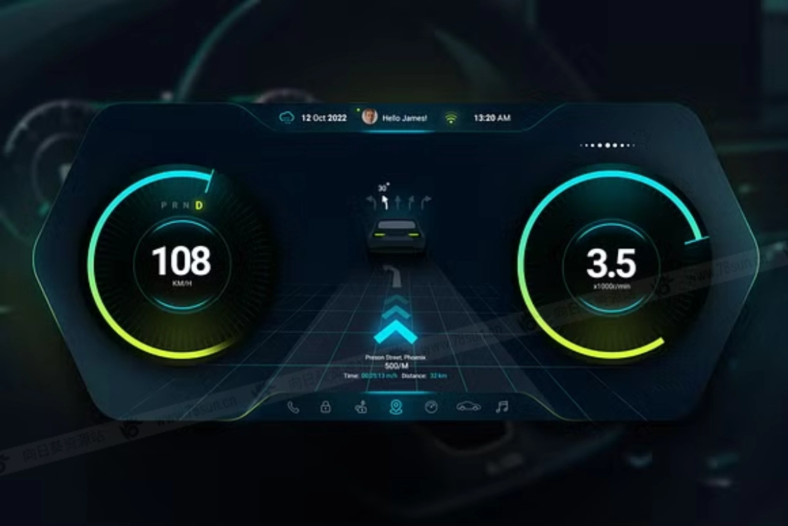 智能汽车HUD自动驾驶仪表盘ui界面设计psd源文件模板,Photoshop格式,共5个源文件 声明:本站所有资源版权均属于原作者所有,这里所提供资源均只能用于参考学习用,请勿直接商用。若由于商用引起版权纠纷,一切责任均由使用者承担。更多说明请参考 VIP介绍。