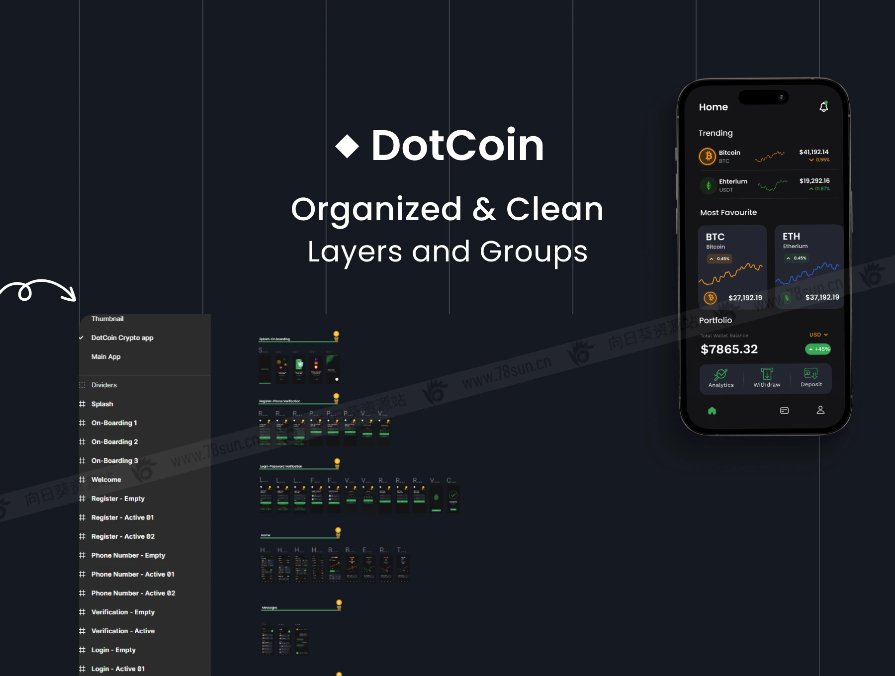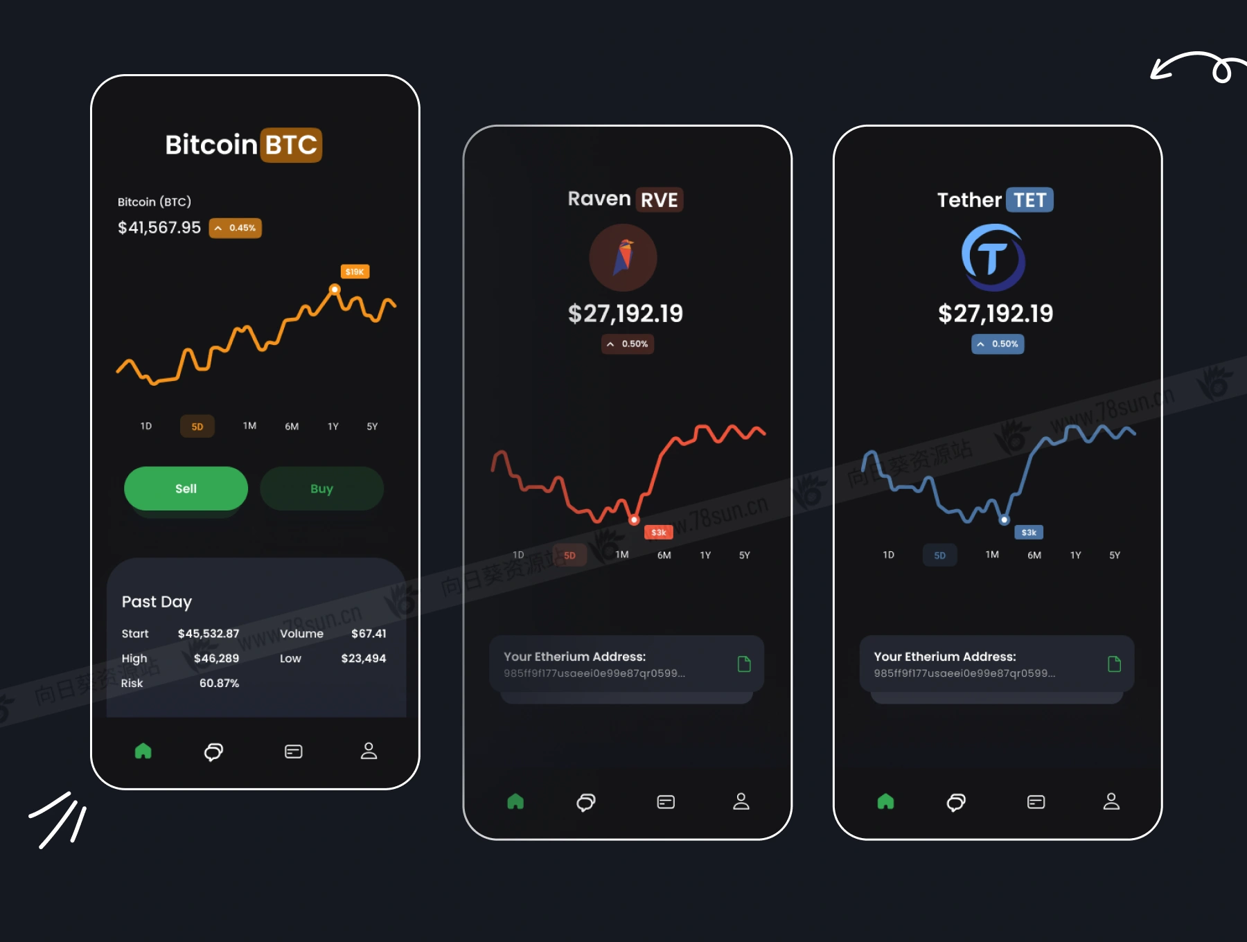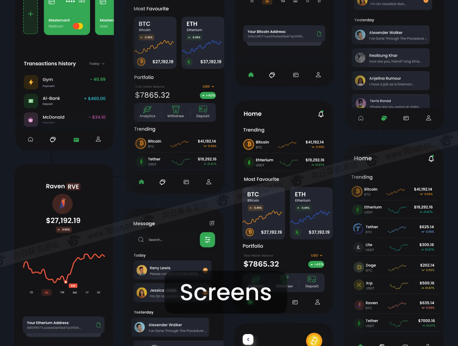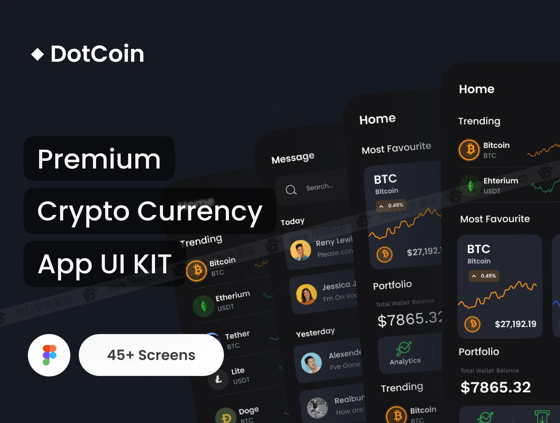 金融加密虚拟货币市场走势app ui界面设计fig源文件模板,Figma格式,共45个界面!
