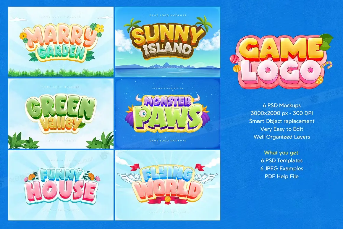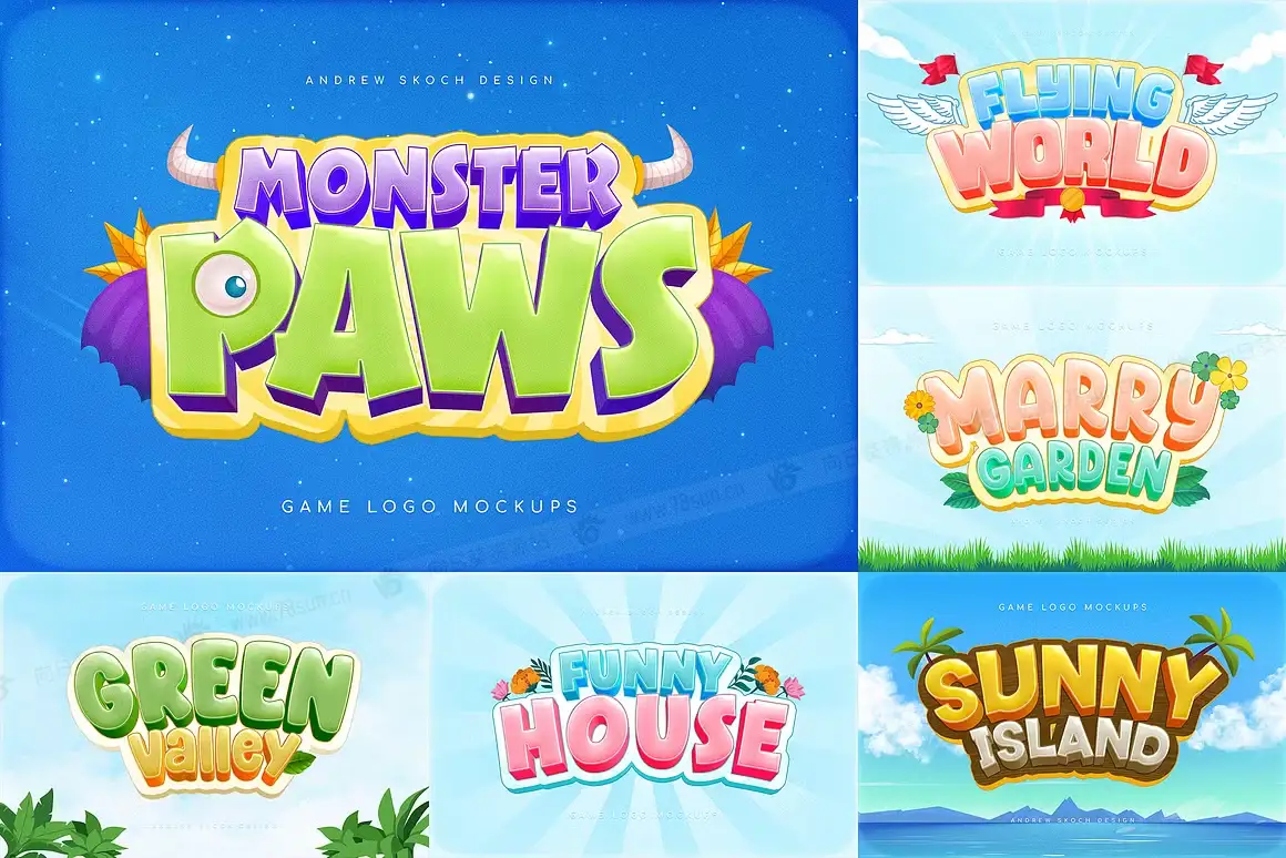 3D立体卡通糖果风格游戏徽标文字效果psd艺术字体模板,卡通风格,生动,美味,糖果字母最适合搞笑手机游戏。为您的游戏徽标添加彩色字体。适用于手机游戏用户界面。通过智能对象编辑文本,所有效果都会自动应用。
