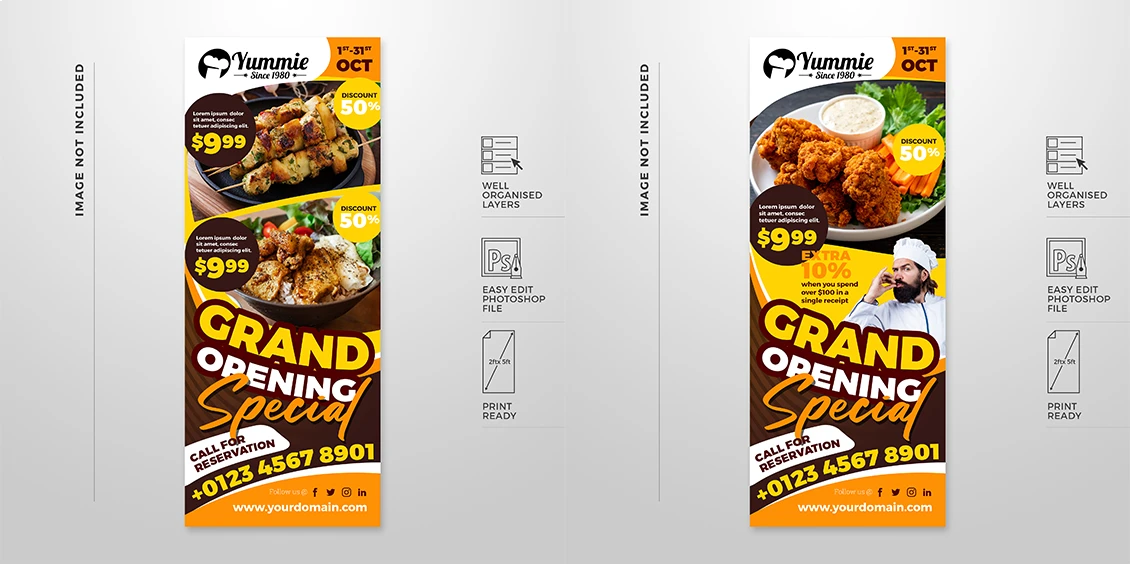 餐馆酒店餐饮美食广告促销活动展架海报易拉宝psd设计模板,Photoshop格式,共23个源文件,不含美食照片