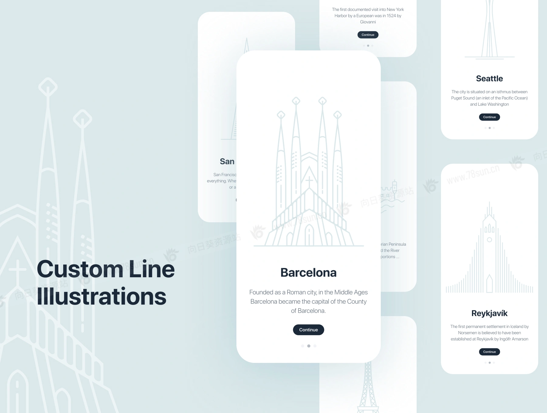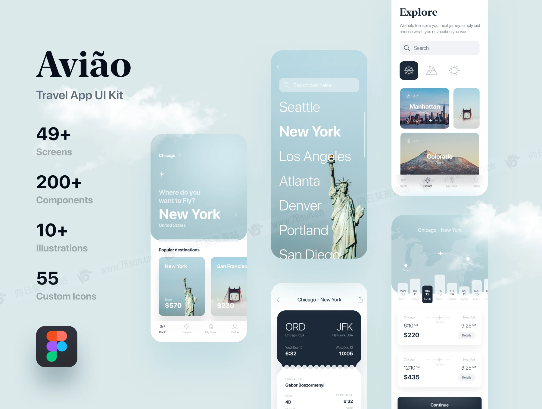 旅行旅游航班酒店预订景点信息app ui界面设计fig源文件模板,figma格式,可帮助您加快设计工作流程。该套件包含线条和平面插图,可为您的屏幕增添趣味。所有组件和屏幕都完全响应,因此您可以轻松适应所需的屏幕尺寸。图标也很重要,包括 55 个定制设计的图标、49+ iPhone X 屏幕、12+ 插图