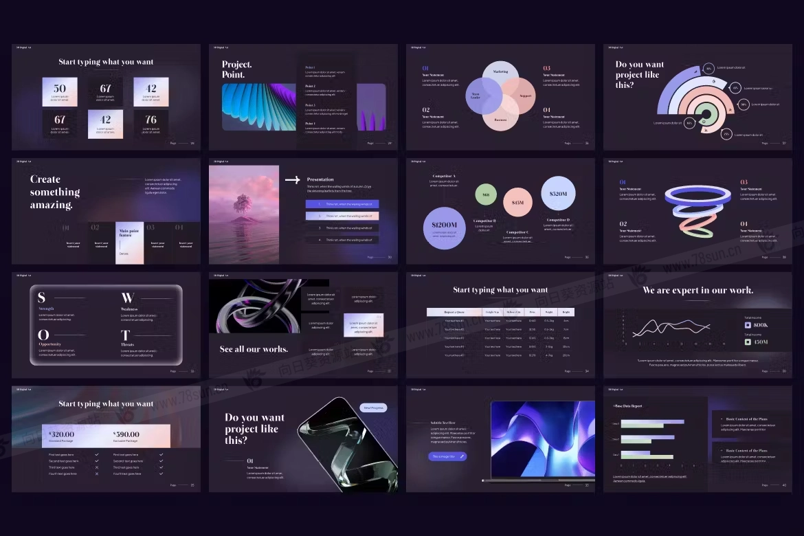 3D数字艺术公司企业业务介绍工作报告幻灯片PowerPoint Keynote演示模板,主要特点: