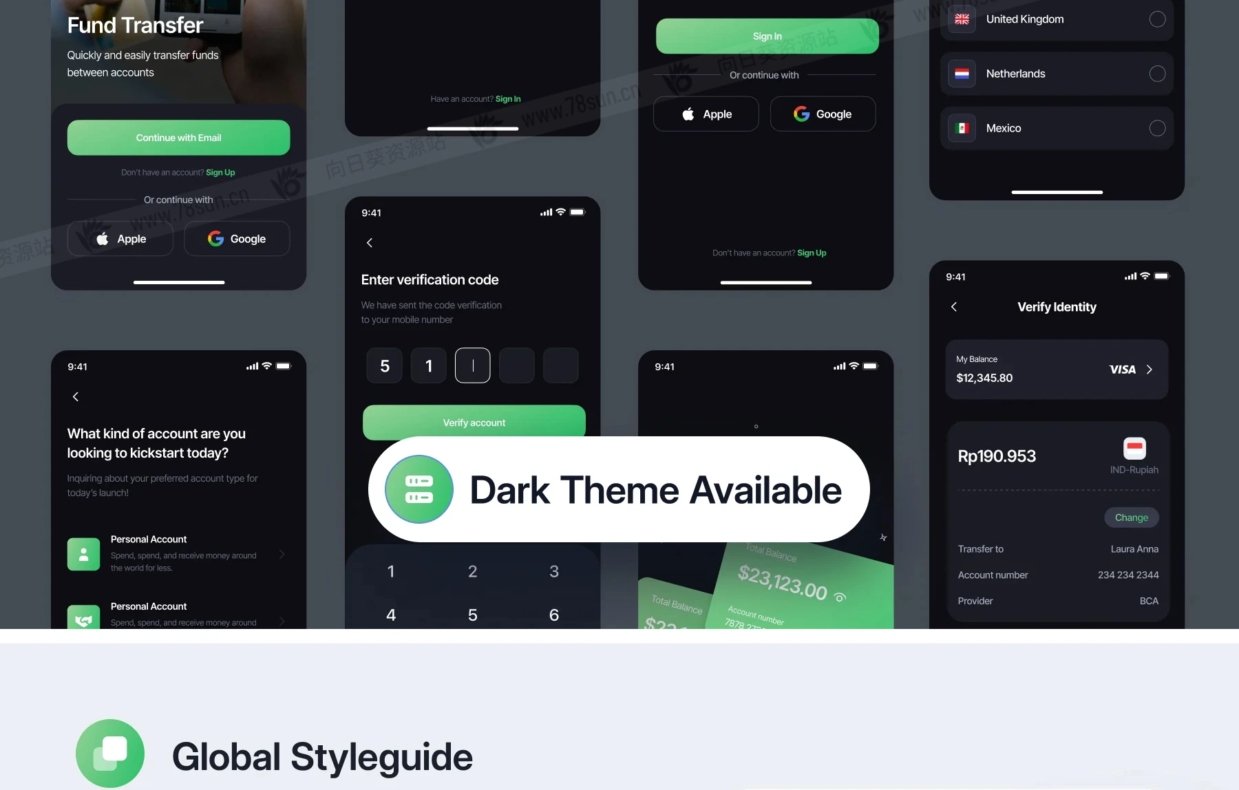 金融银行交易列表地图定位app ui界面设计fig源文件模板,易于在 Figma 中使用。共 55+ 浅色和深色页面设计。利用了 Figma 的所有功能,包括设计系统、排版、图标、动态组件和变体。所有符号和对象都是基于矢量的,并且易于编辑。