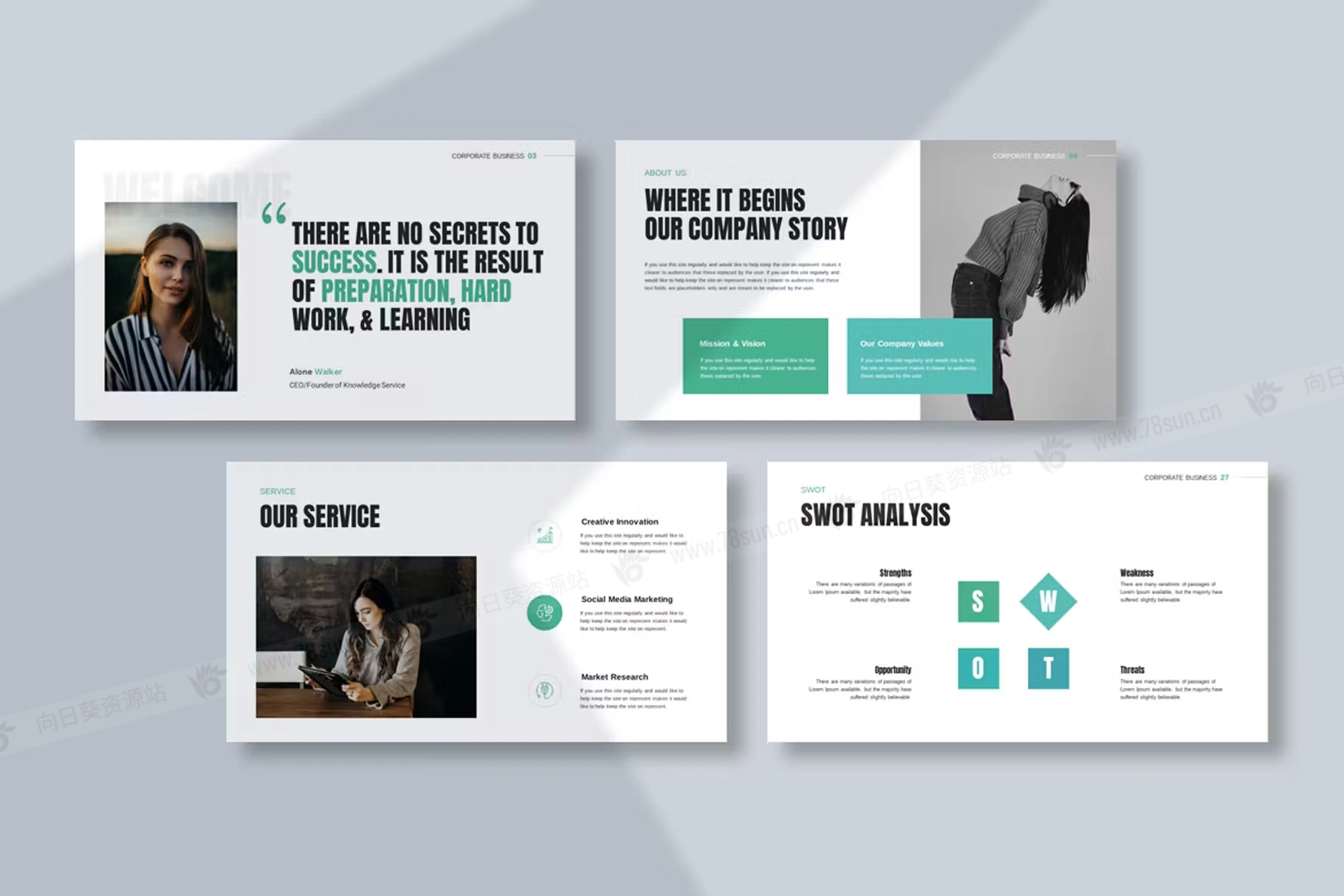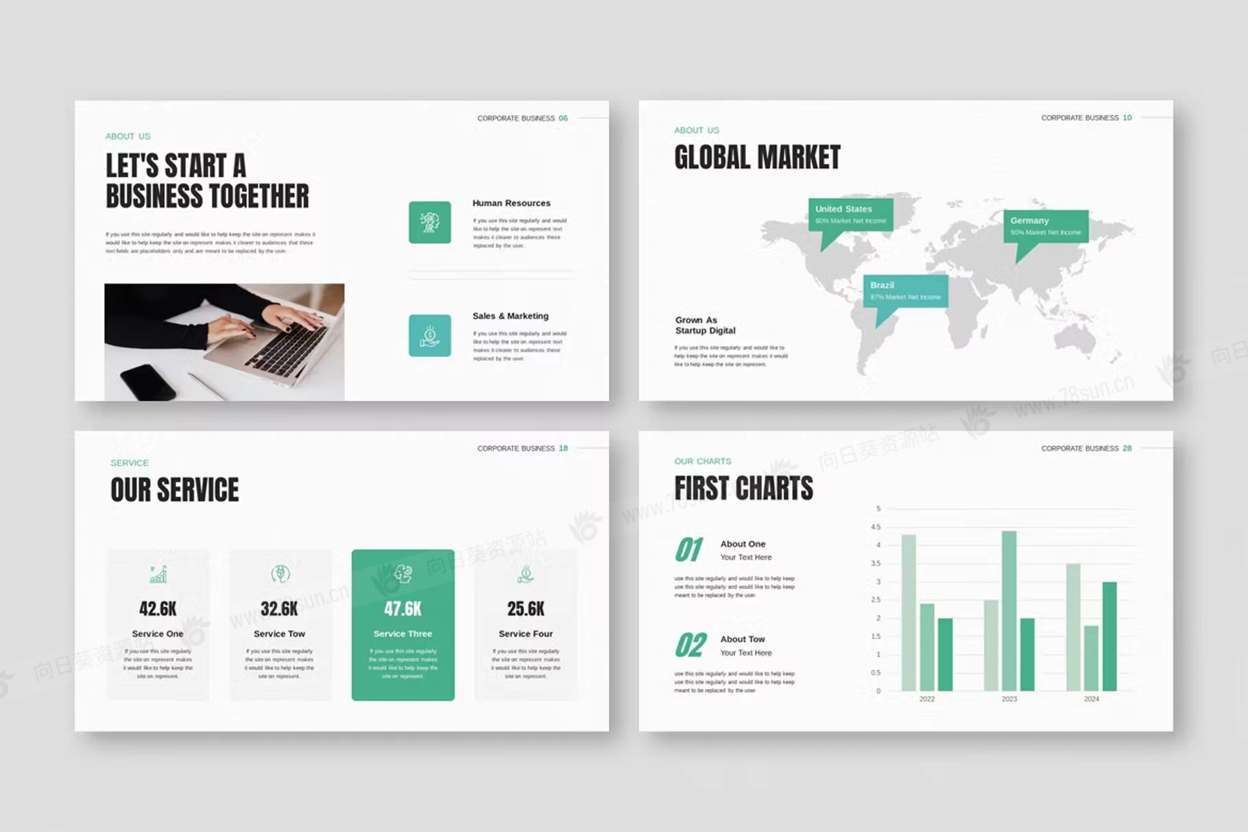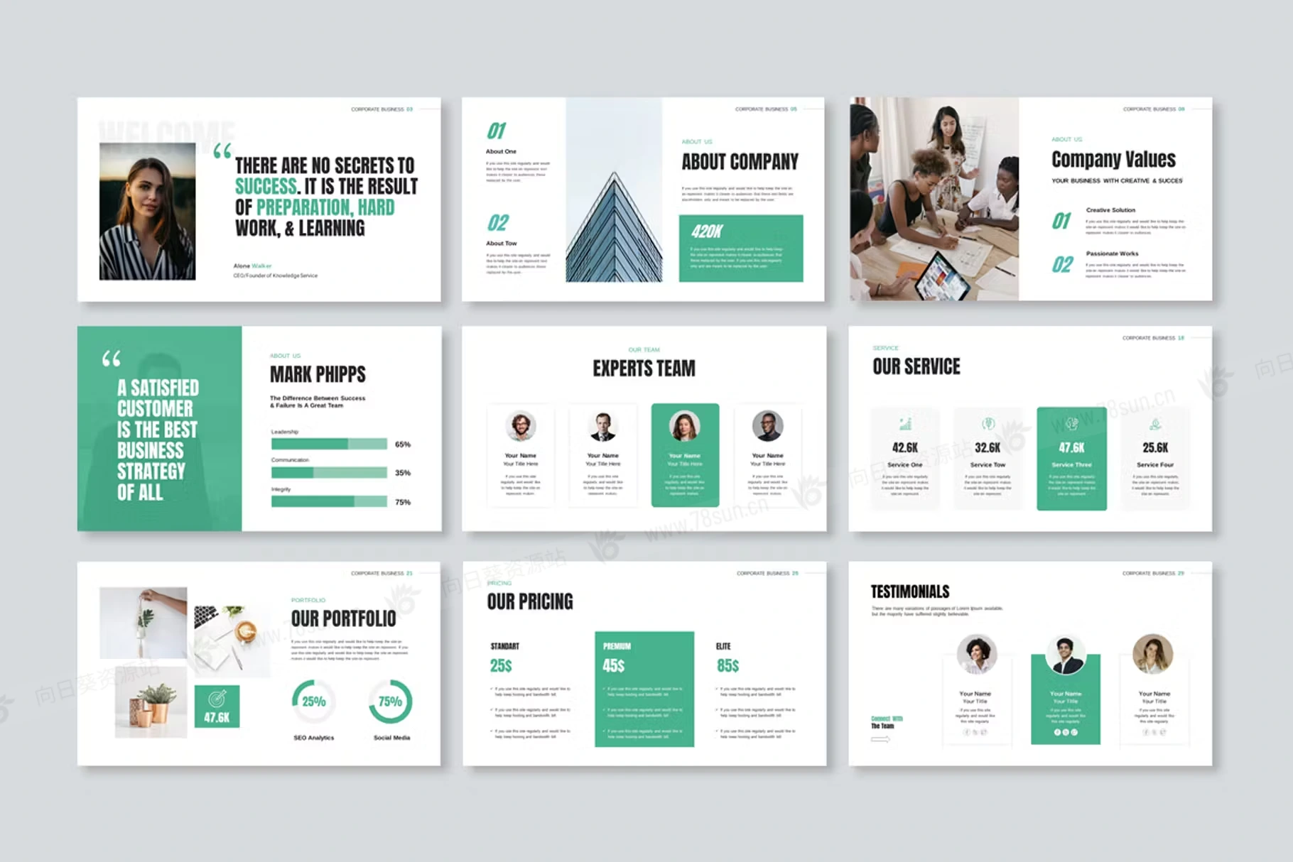 绿色商务企业商业计划书营销幻灯片PowerPoint Keynote演示模板,独特、专业、干净、创意的演示风格模板, 简单的演示模板。所有元素都易于编辑,您可以轻松更改 与您的个人或公司品牌相匹配的颜色。特征: