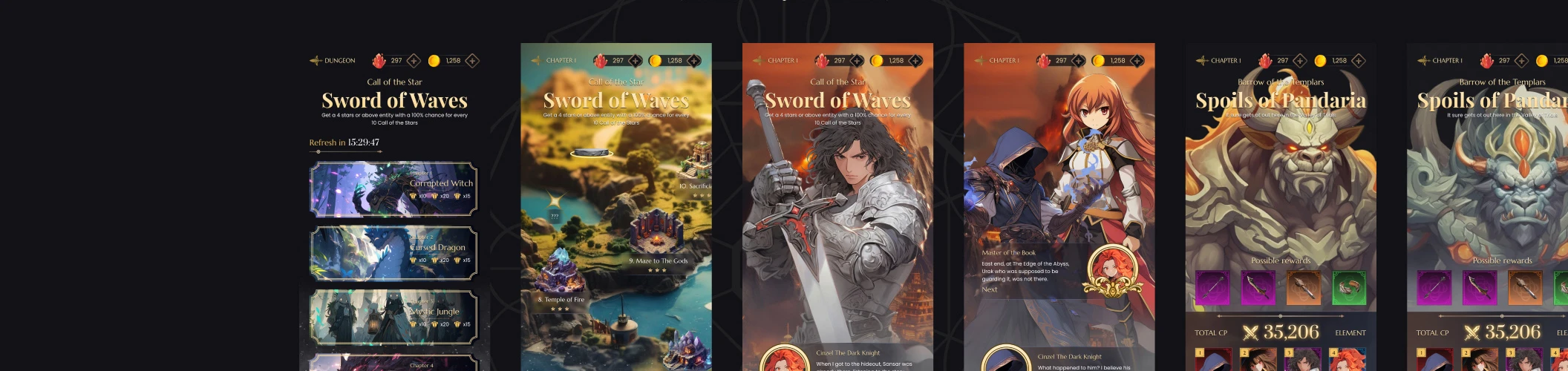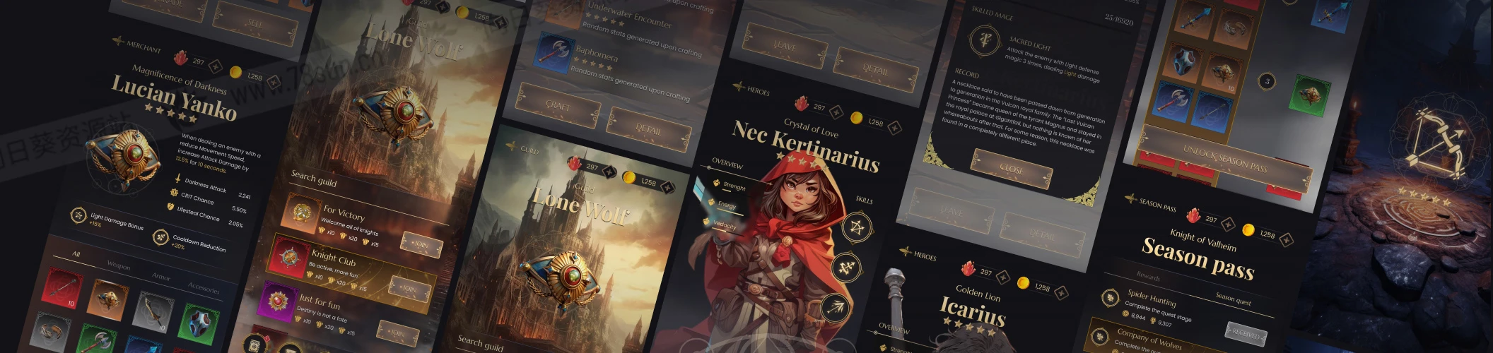 中世纪主题手机益智骑士游戏app ui界面设计fig源文件模板,模板包括超过 58 个在 Figma 上精心制作的屏幕,非常适合旨在构建引人入胜且视觉震撼的益智游戏的开发人员,它将中世纪的魅力与现代设计原则融为一体
