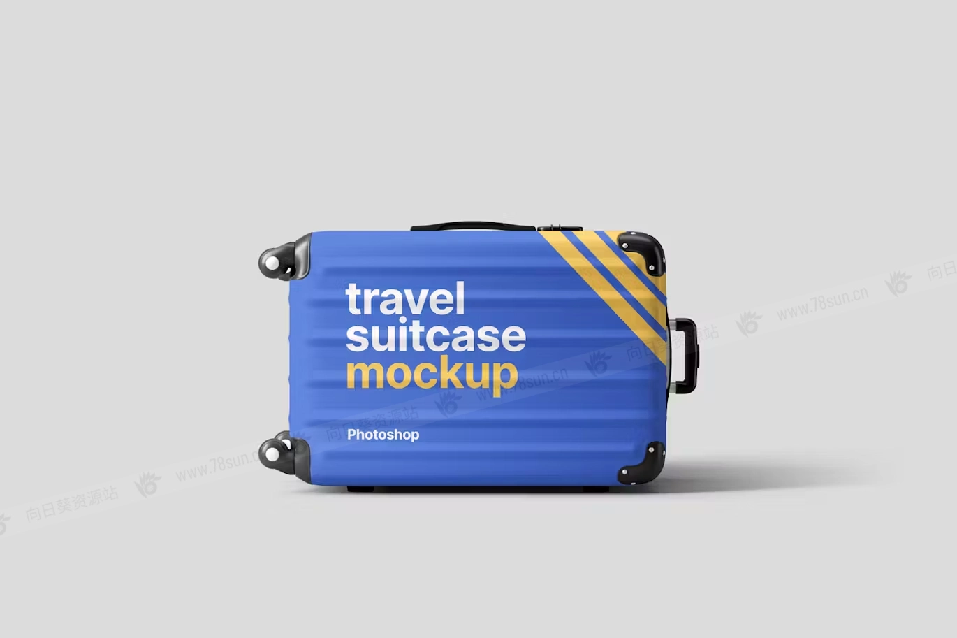 旅行拉杆箱手提箱行李箱品牌VI效果图展示智能贴图psd设计样机,以专业地展示您的设计。提供 PSD Photoshop 格式,具有智能对象功能,可帮助您在几秒钟内用自己的设计替换当前设计。