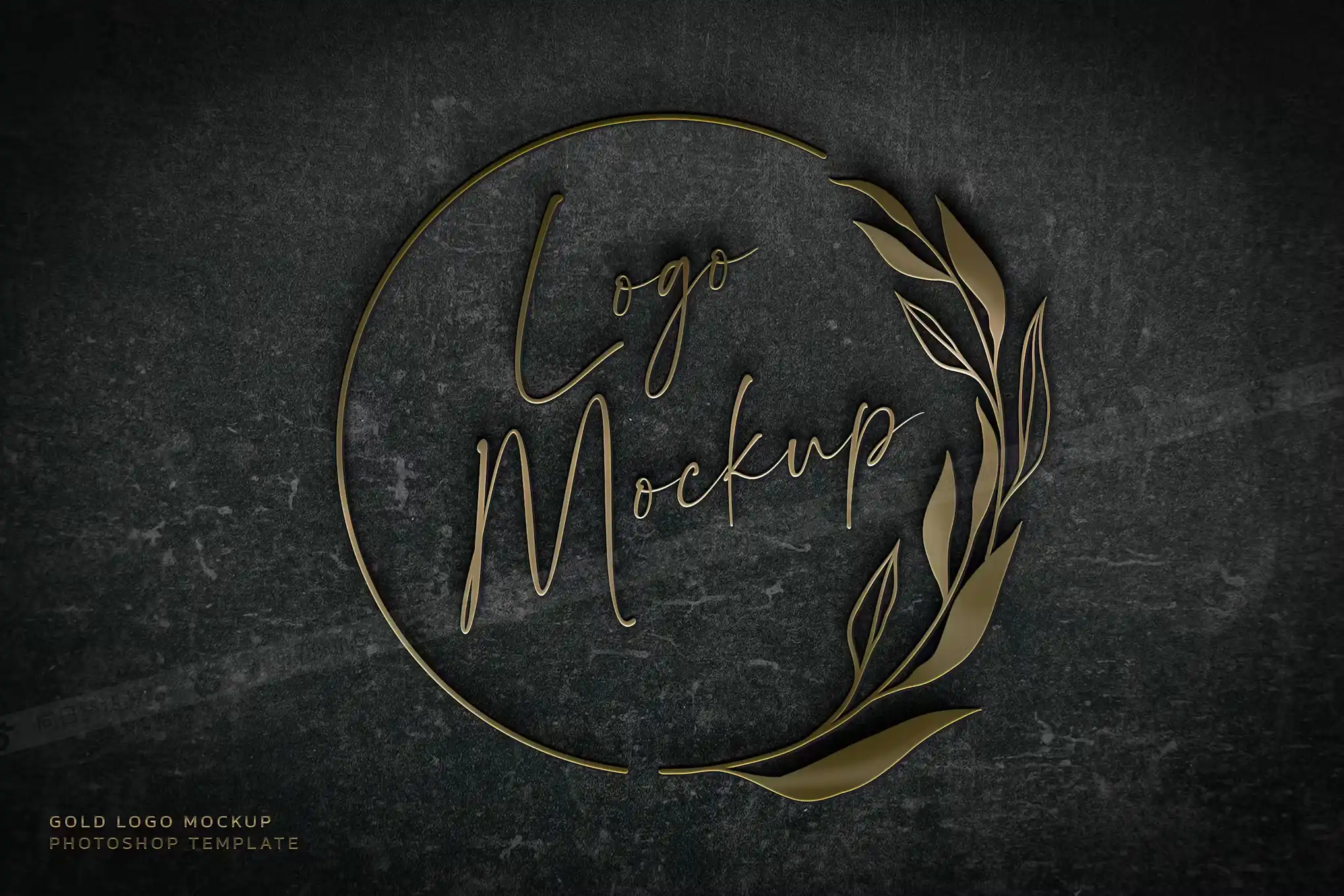 逼真3D立体金色黄金LOGO徽标样式智能贴图psd设计样机,展示您的徽标的简单方法。使用 3D 黄金模型。易于使用的Photoshop模型。只需将您的徽标放入智能对象中并保存即可。逼真的 3D 效果,在深色墙壁上具有自然阴影。