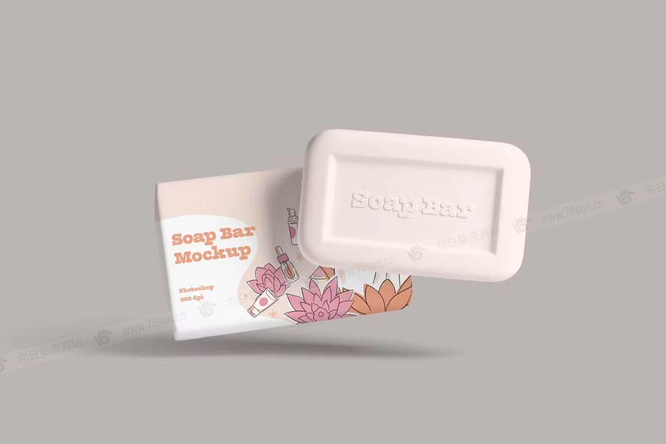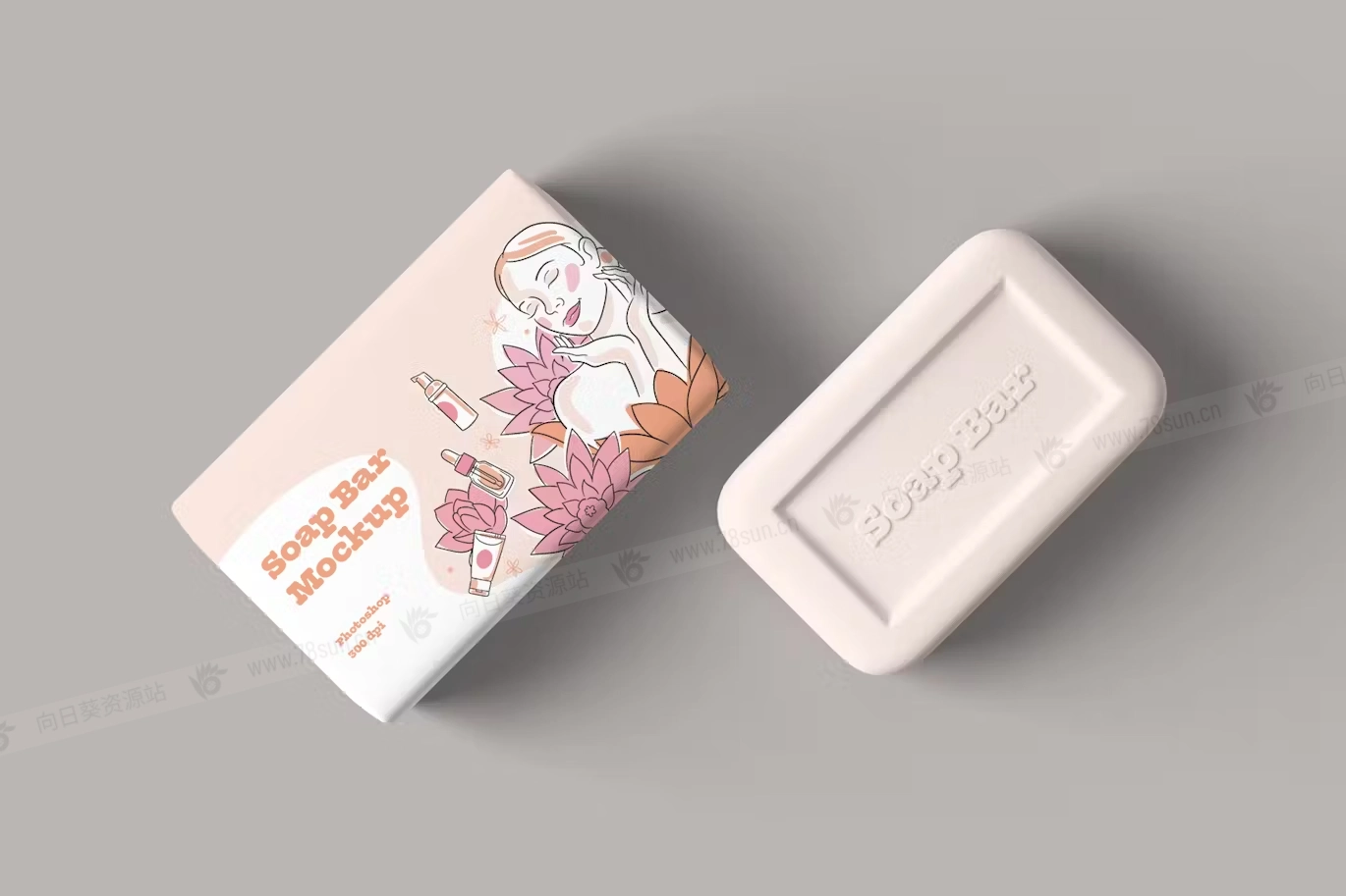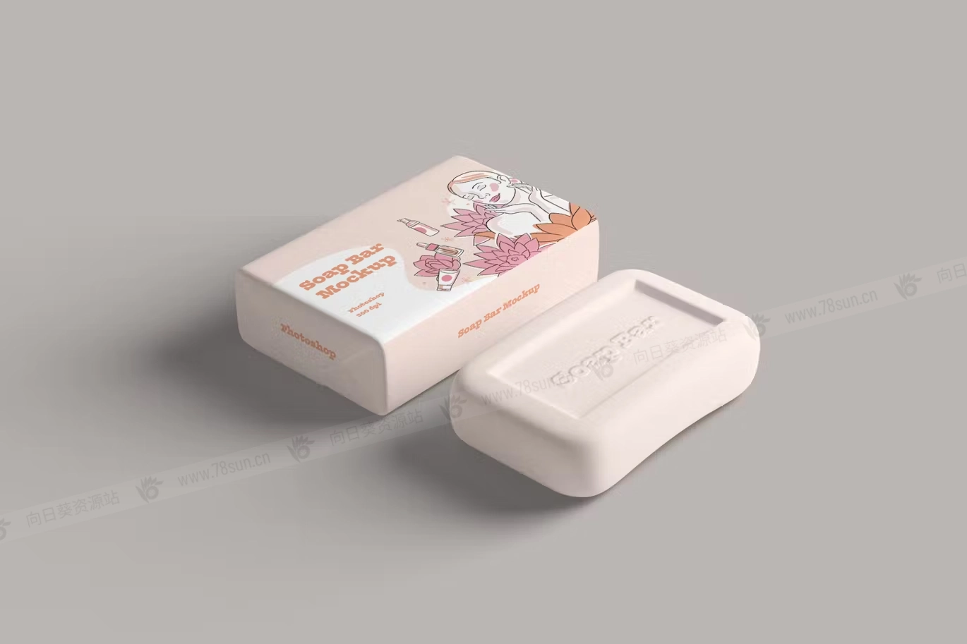 肥皂纸质包装盒品牌VI效果图展示智能贴图psd设计样机,由 5 个肥皂条模型组成,以专业地展示您的肥皂包装设计。提供 Photoshop PSD 格式,具有智能对象功能,可帮助您用在几秒钟内成为你的。