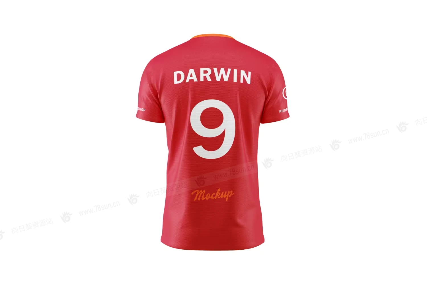 足球体育运动球衣T恤VI效果图展示智能贴图psd设计样机,分前视图、侧视图和后视图,提供 PSD Photoshop 格式,具有智能对象功能,可帮助您在几秒钟内用自己的设计替换当前设计。
