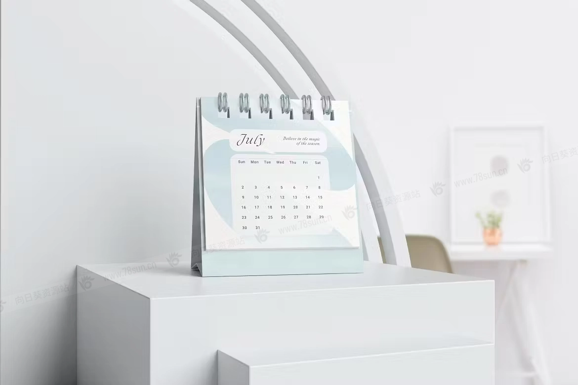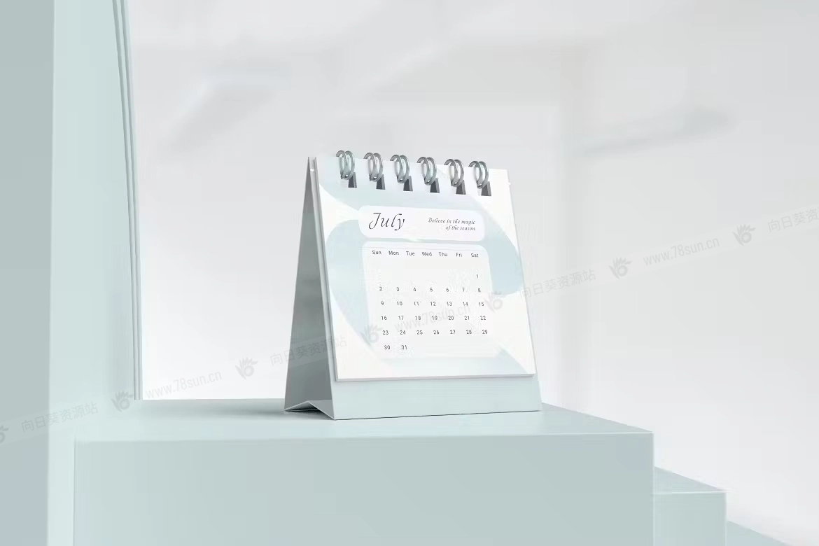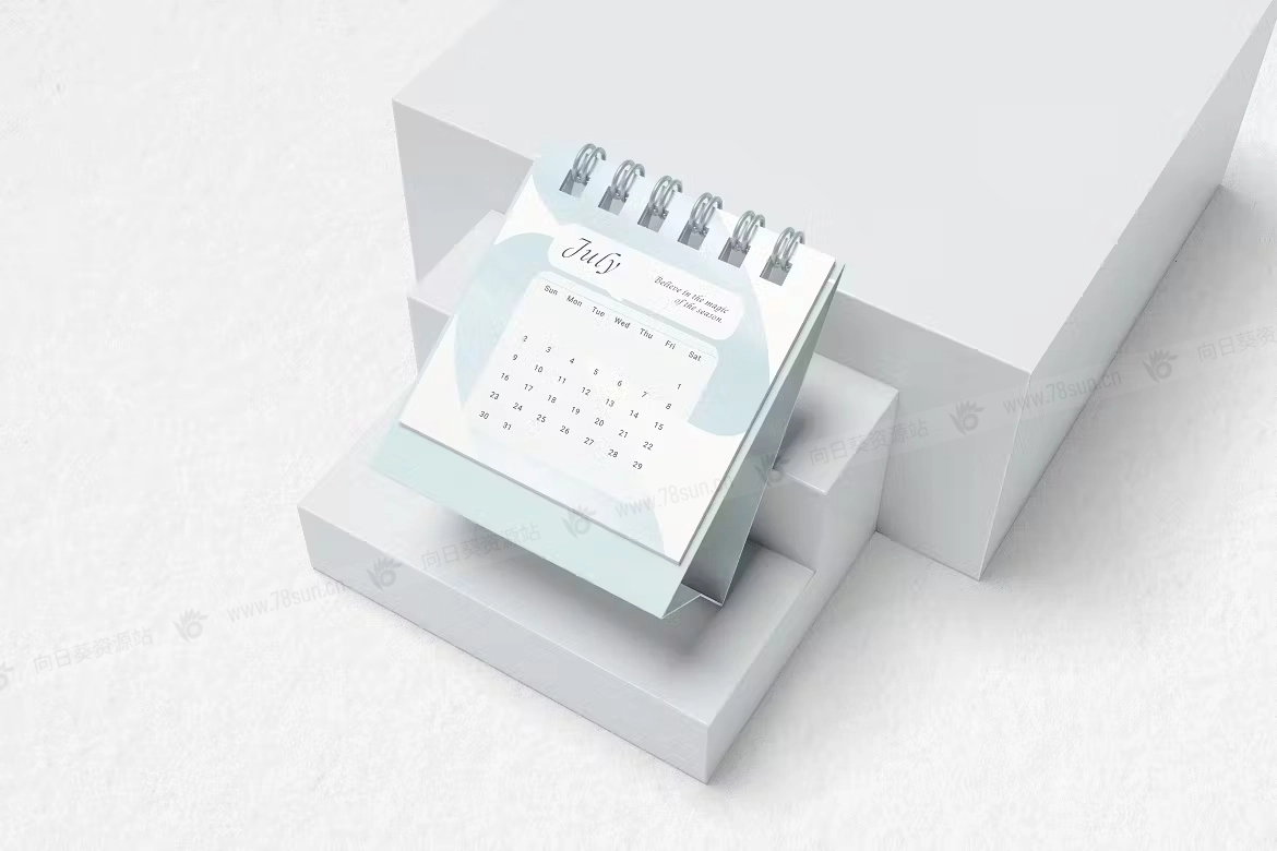 方形桌面螺旋日历台历VI效果图展示智能贴图psd设计样机,您可以使用智能对象功能轻松快速地替换设计。提供 PSD Photoshop 格式,具有智能对象功能,可帮助您在几秒钟内将当前设计替换为自己的设计。