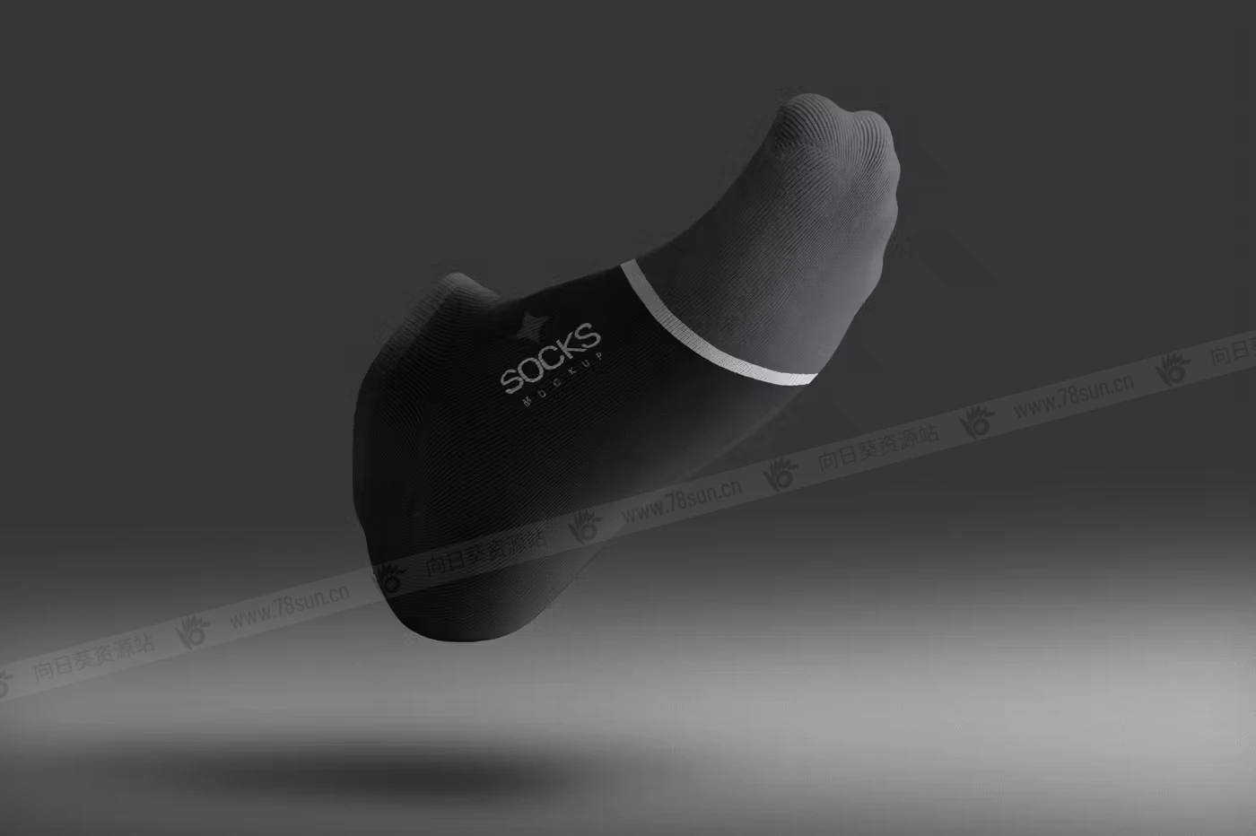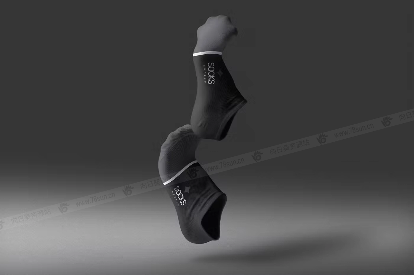 短筒踝袜袜子品牌VI效果图展示智能贴图PSD设计样机,每个袜子模型都具有高分辨率纹理和逼真的照明,
