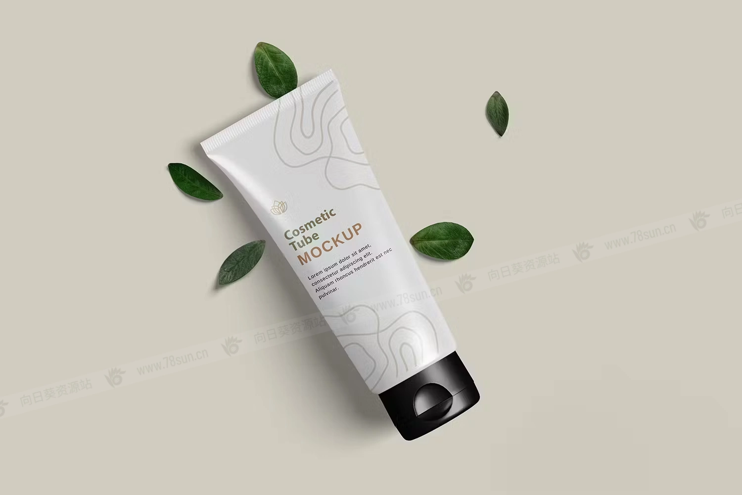 化妆品管洗面奶护手霜品牌VI效果图展示智能贴图psd设计样机,提供具有智能对象功能的 PSD Photoshop 格式,您可以在几秒钟内用自己的设计替换当前设计。所有对象和阴影都是分离的,并且可以编辑以移动对象。