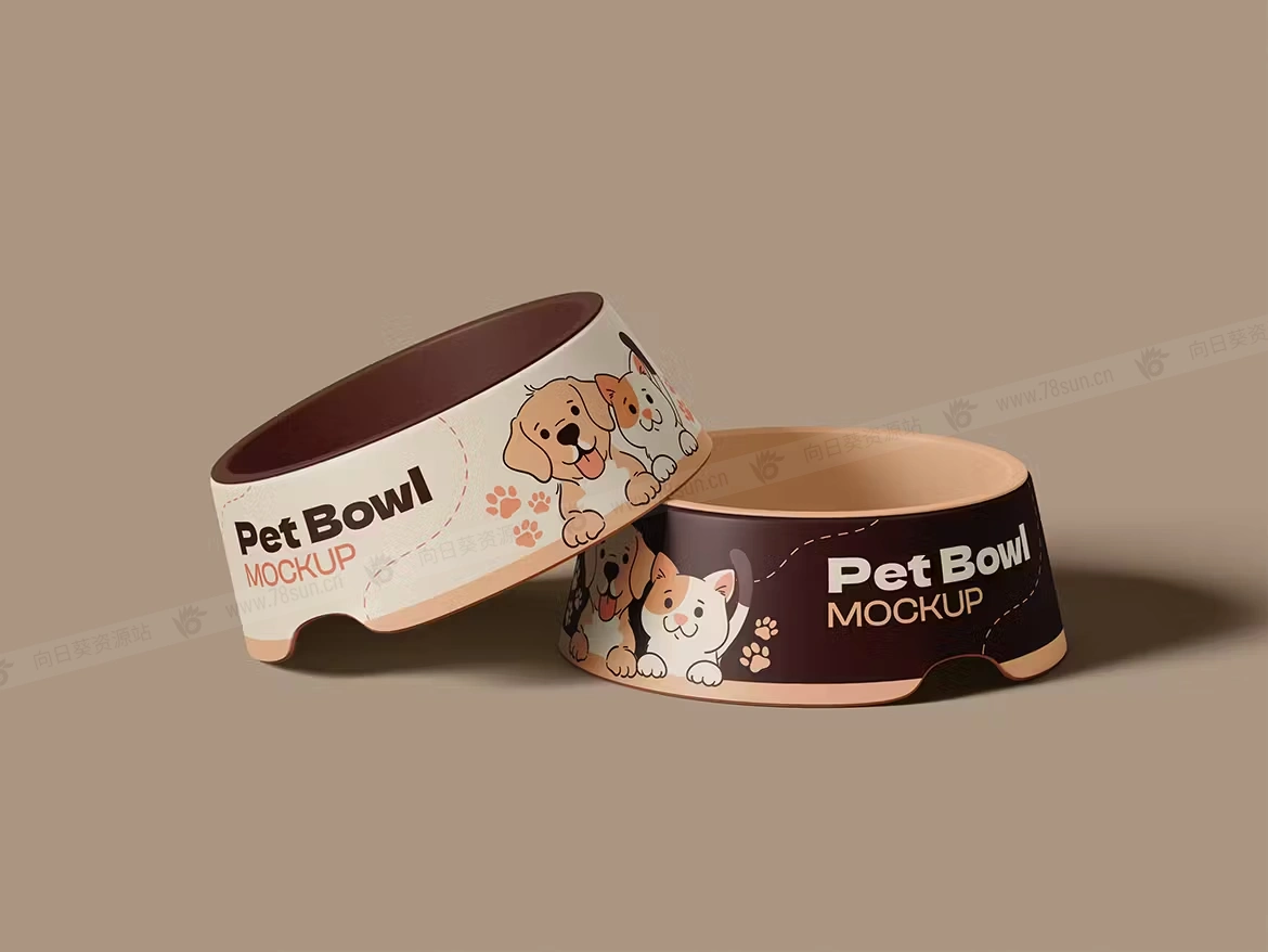 宠物食品狗粮碗品牌VI效果图展示智能贴图psd设计样机,这款多功能模型具有一个智能对象,使您能够毫不费力地修改设计和颜色,