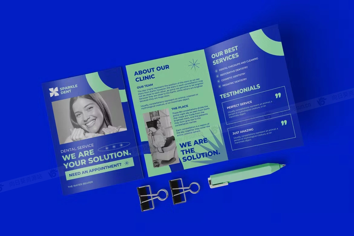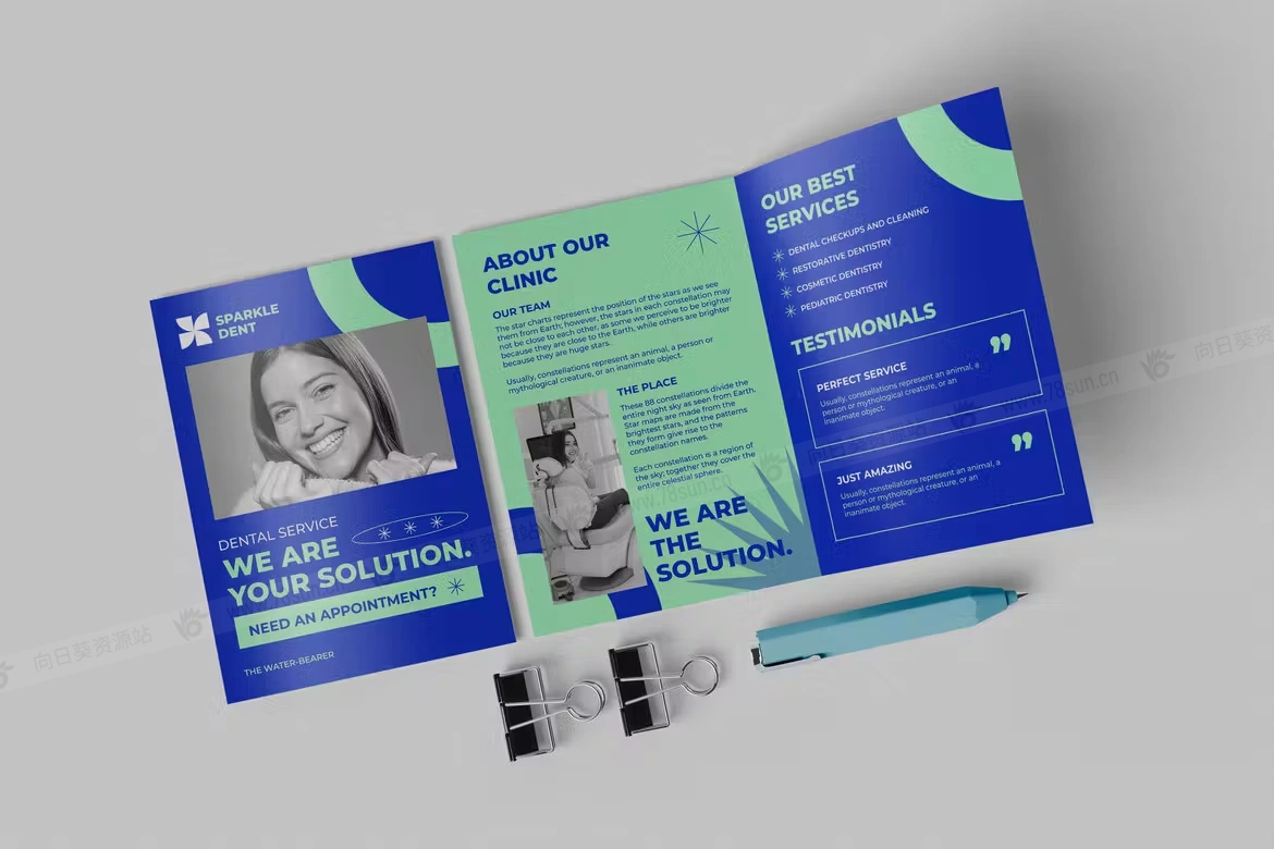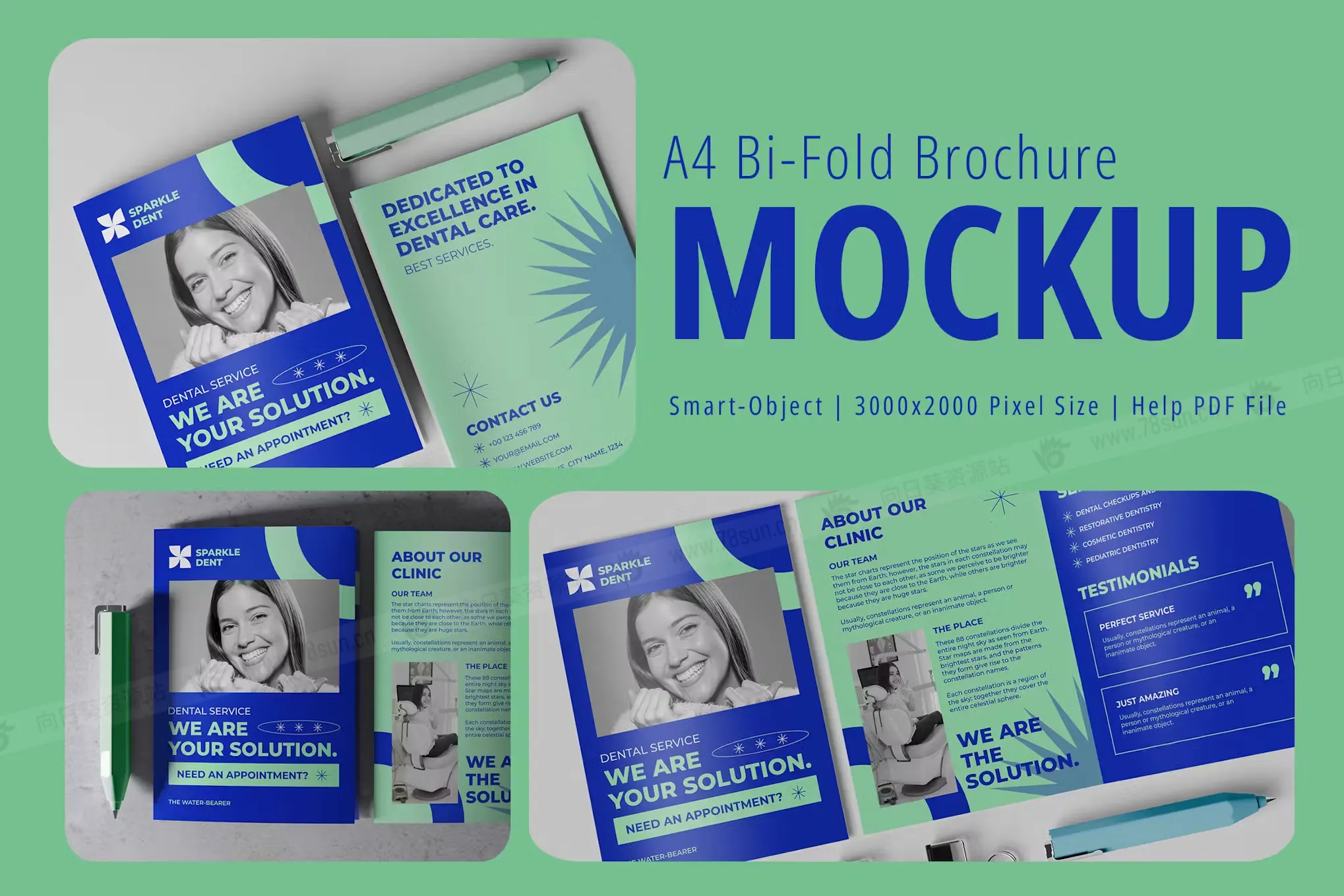 A4双折页宣传册封面内页效果图展示智能贴图psd设计样机,凭通过“轻松自定义”功能轻松个性化颜色和纹理。
