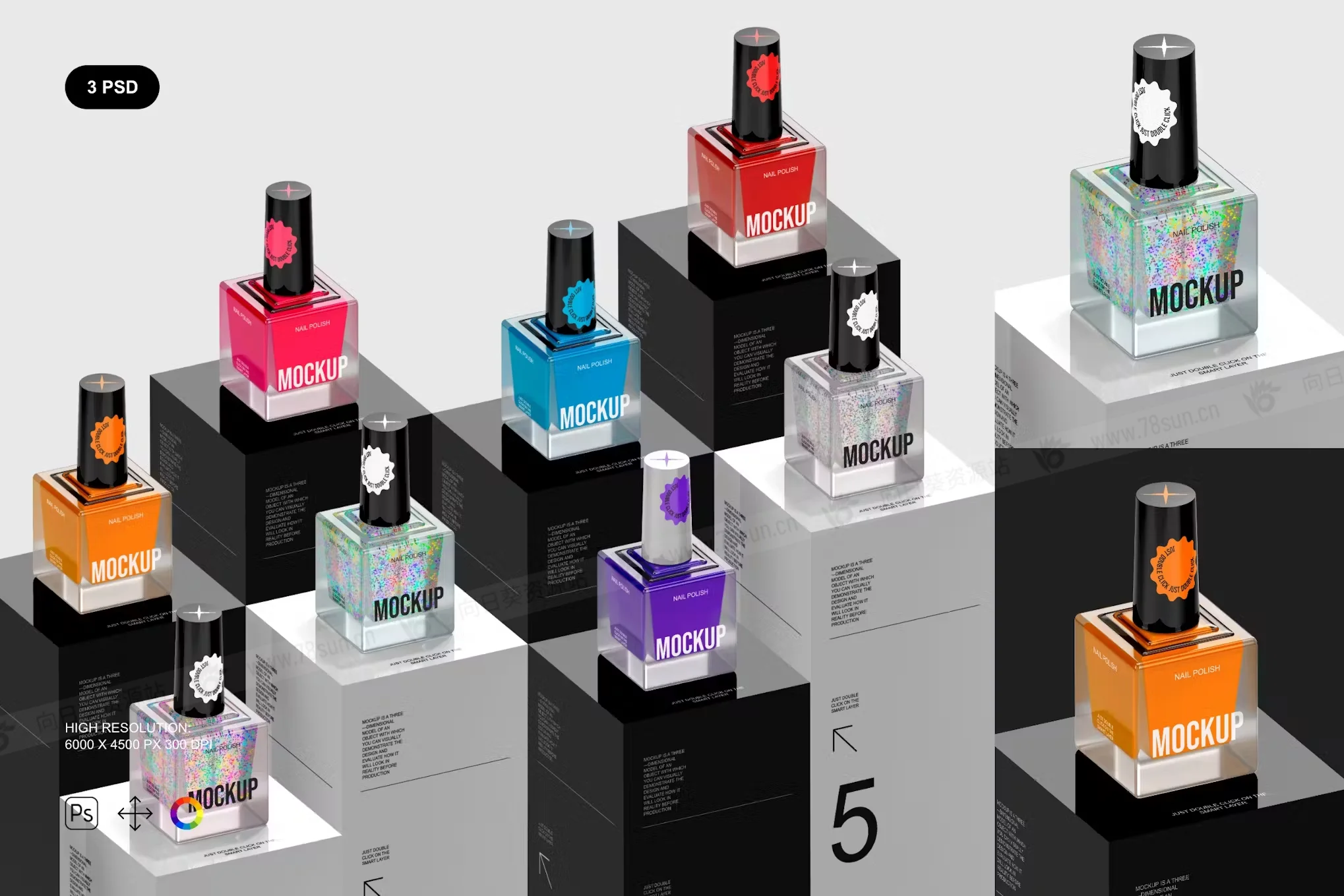 指甲油品牌VI效果图展示智能贴图psd设计样机- 分层、可编辑的.psd文件,通过编辑智能对象和颜色层,准备展示您的定制设计。