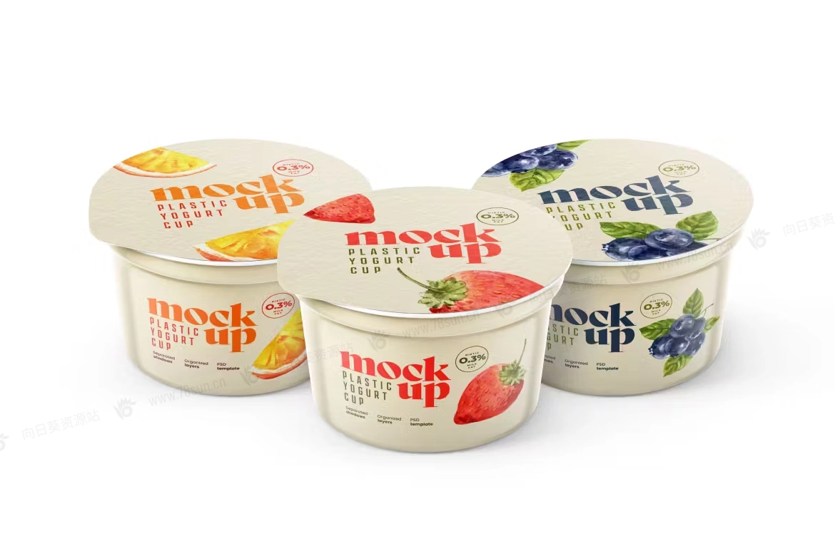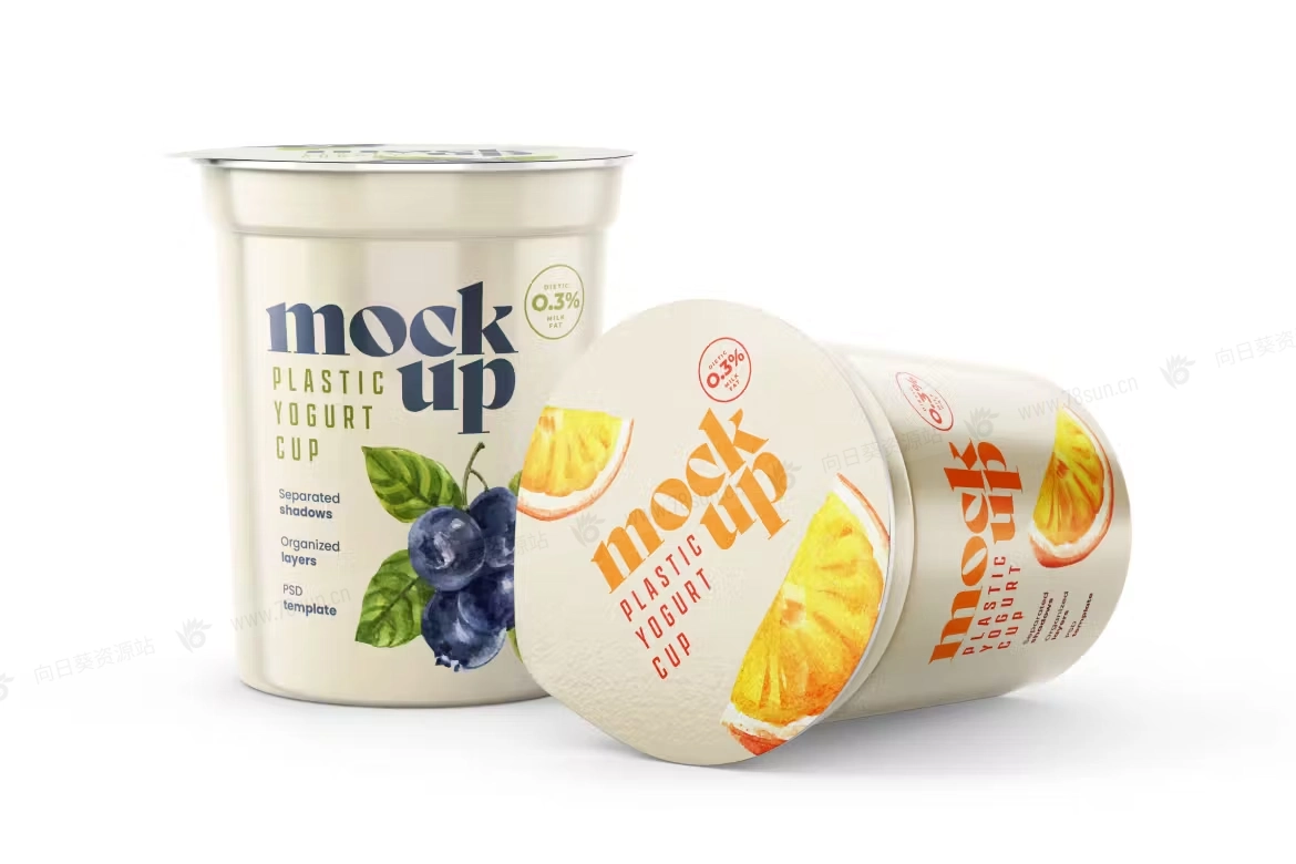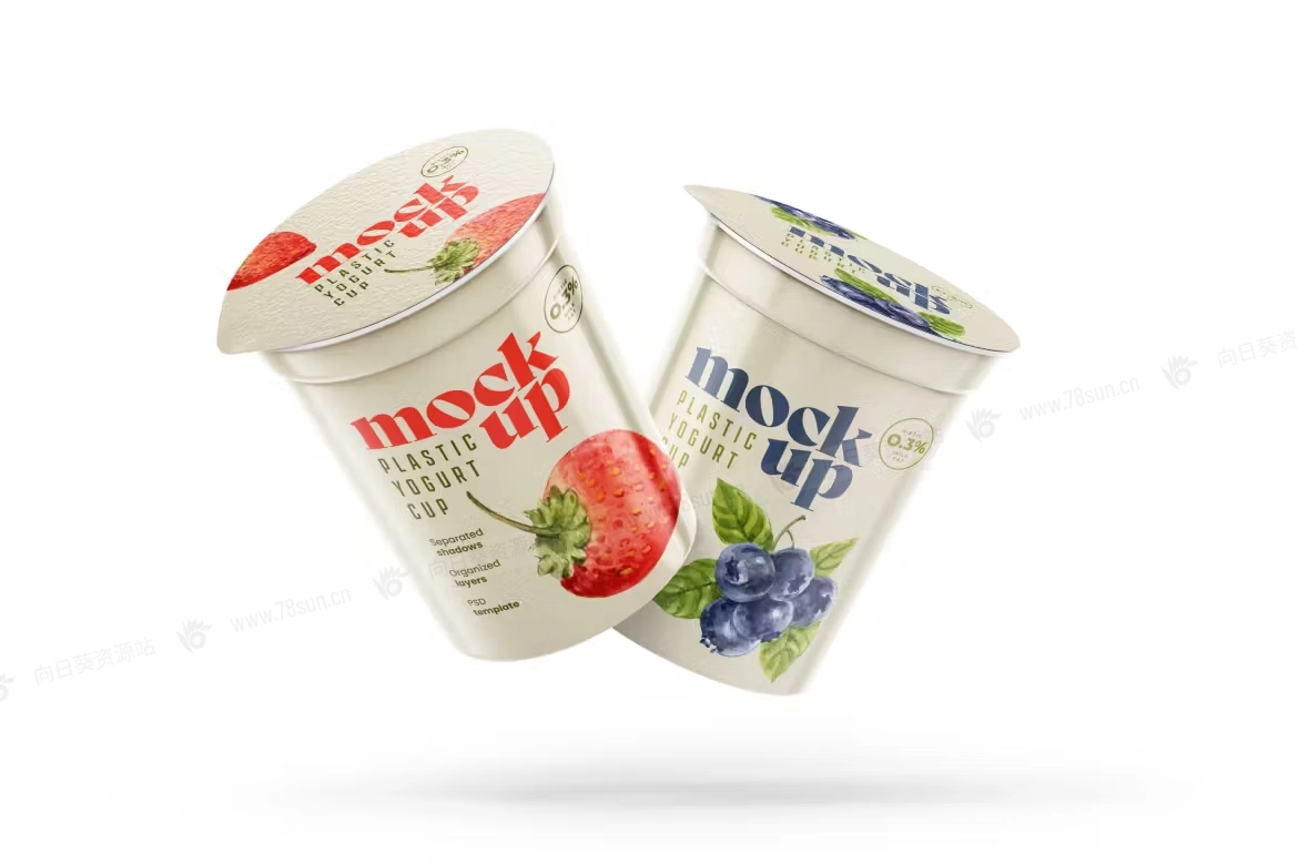 酸奶杯品牌VI效果图展示智能贴图psd包装设计样机,该模型包包括总共 5 个杯子模型,包括草莓、橙子和蓝莓等,可用于食品品牌设计和包装设计。只需在 PSD 文档中使用智能对象将元素替换为您的设计并保存即可。