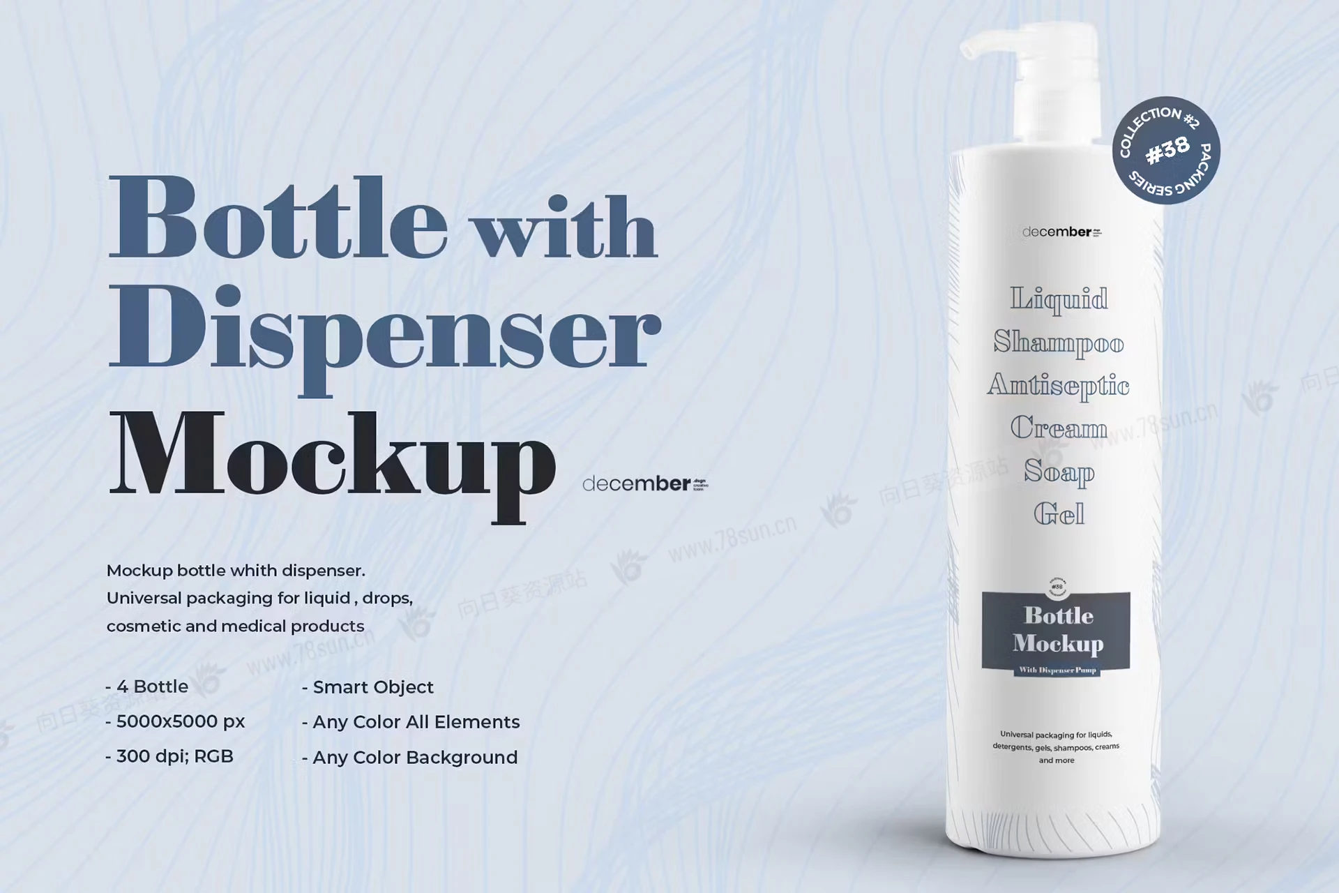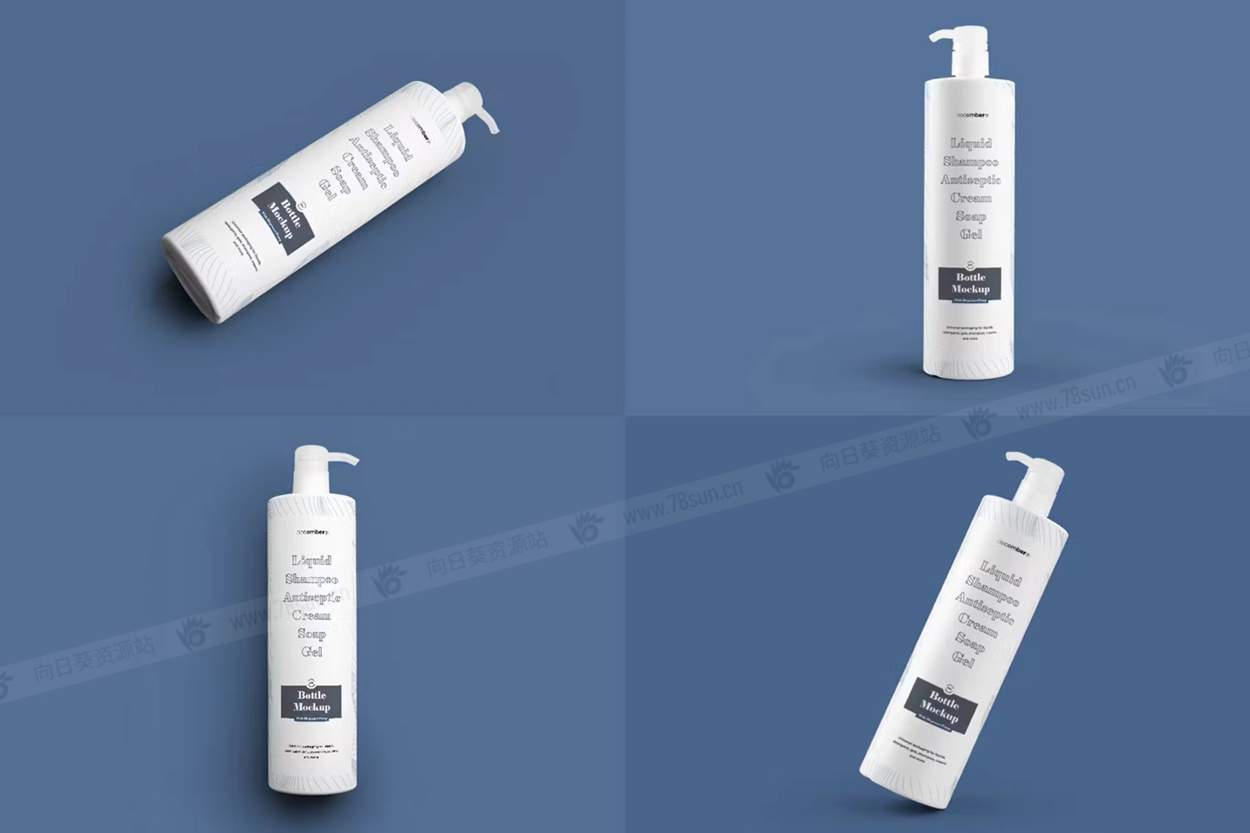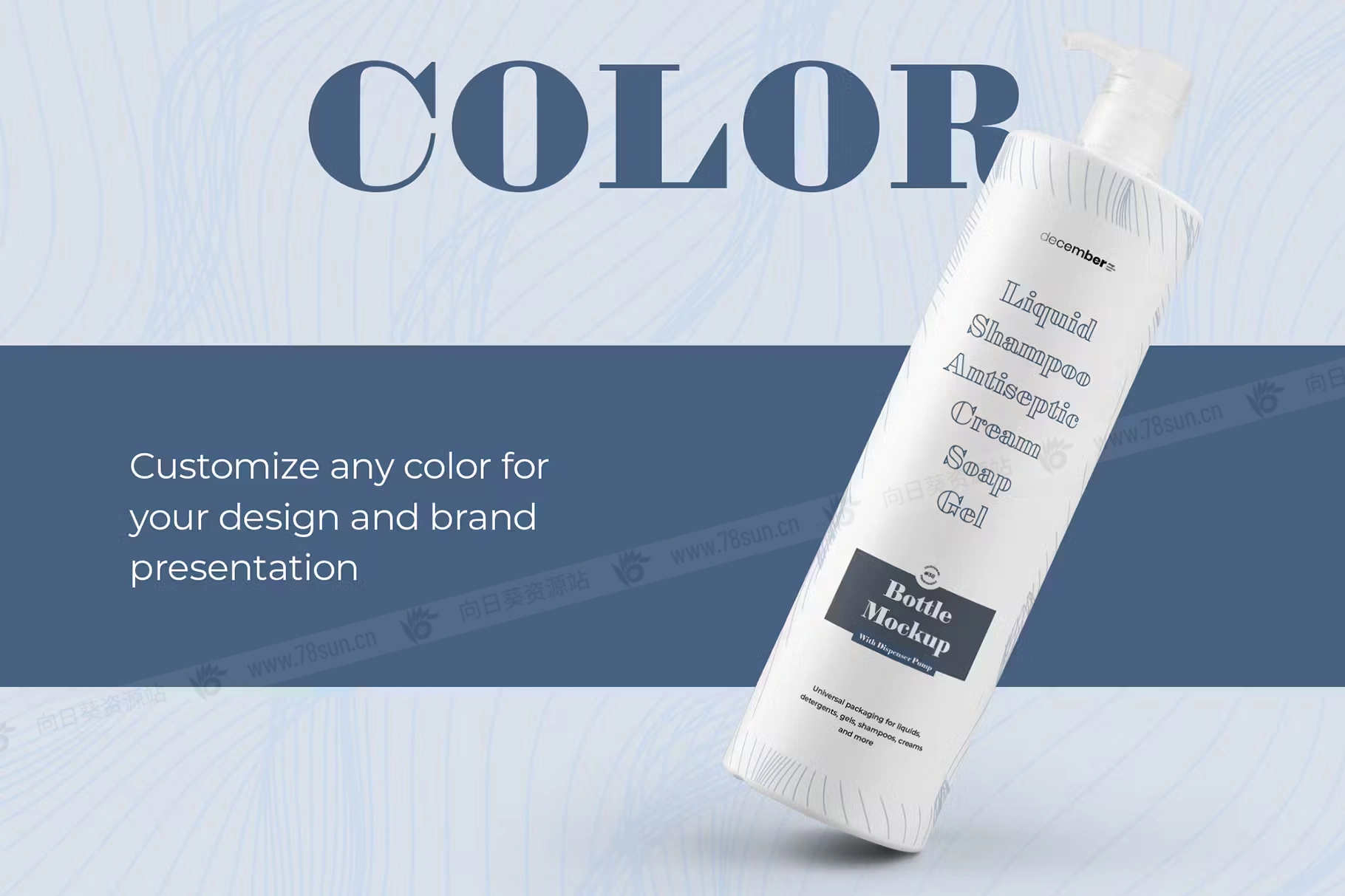 化妆品泵瓶塑料瓶品牌VI效果图展示智能贴图psd设计样机,设计很容易定制图像设计(在瓶子上),颜色瓶子和所有元素,所有层都经过组织,重命名和标记,您可以轻松更改瓶子上的标签。