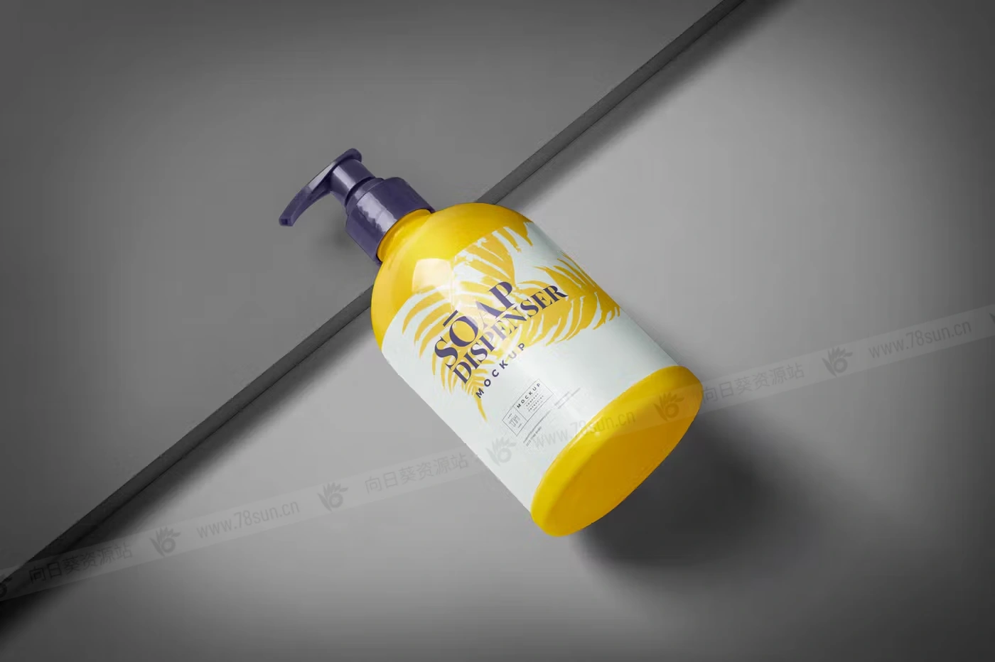 洗手液泵瓶塑料瓶品牌VI效果图展示智能贴图psd设计样机,