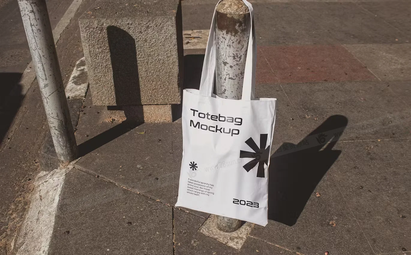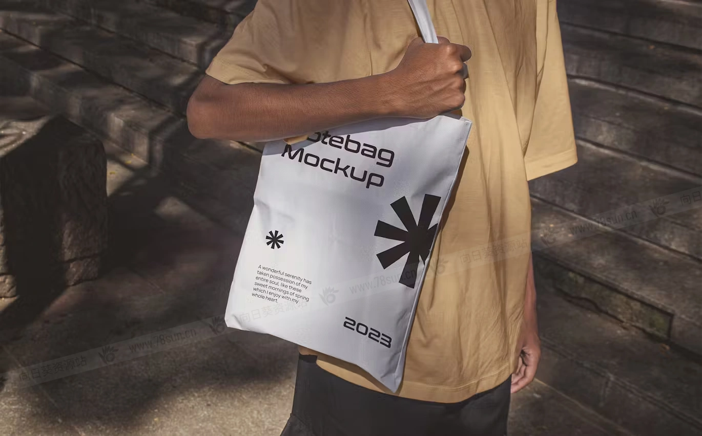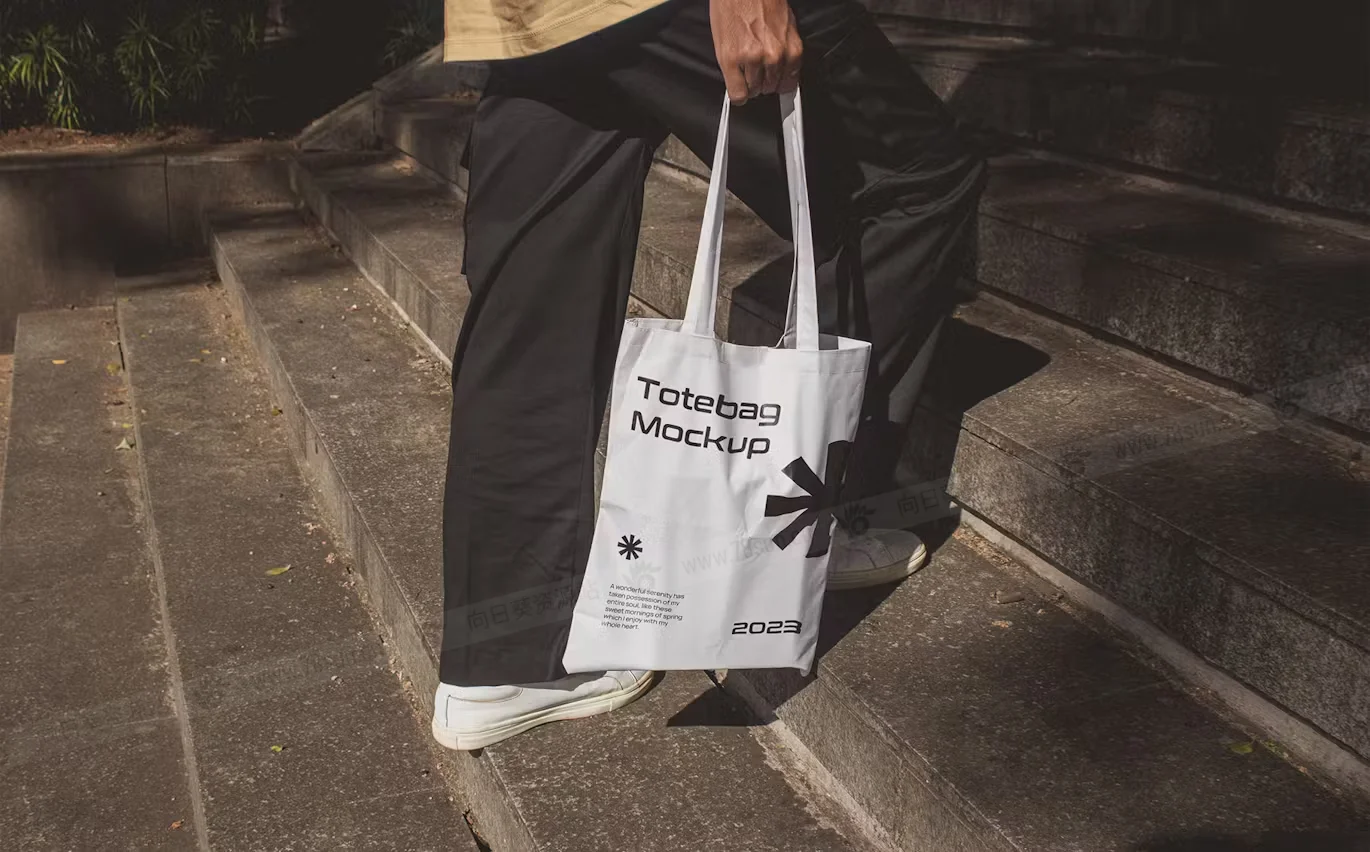 户外托特手提袋购物袋品牌VI效果图展示智能贴图psd设计样机,模型是以逼真的外观呈现产品设计的最佳方式。