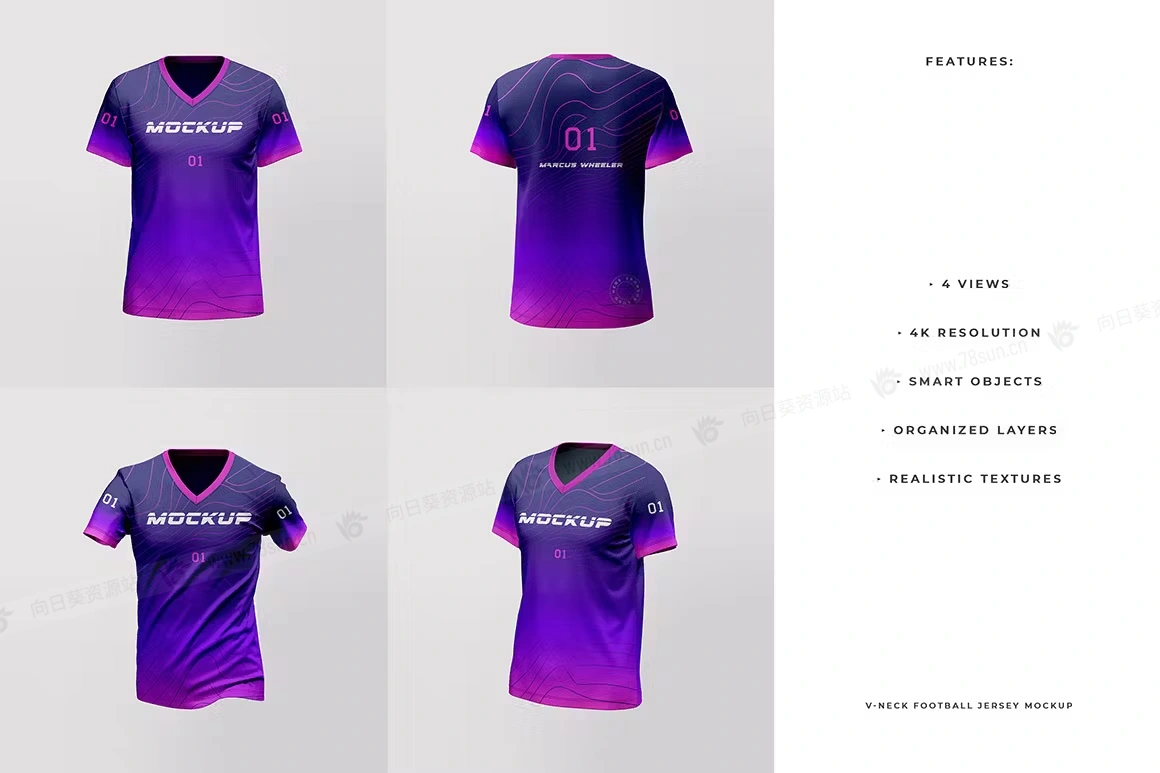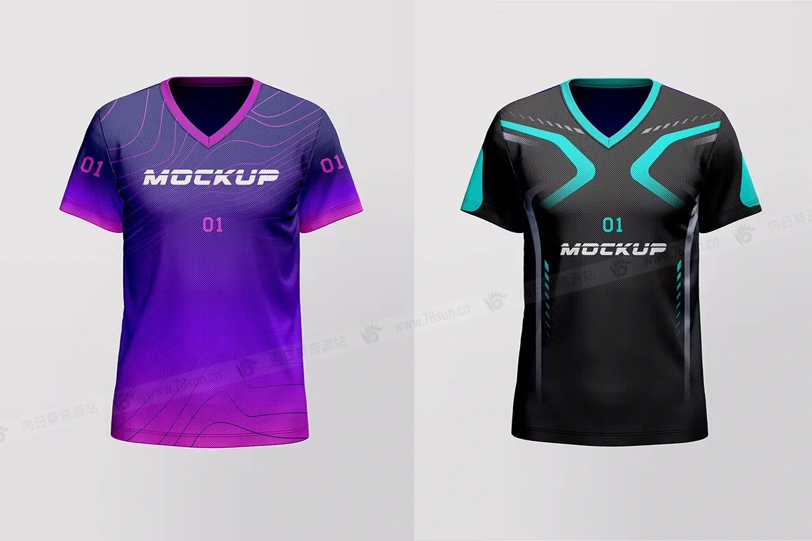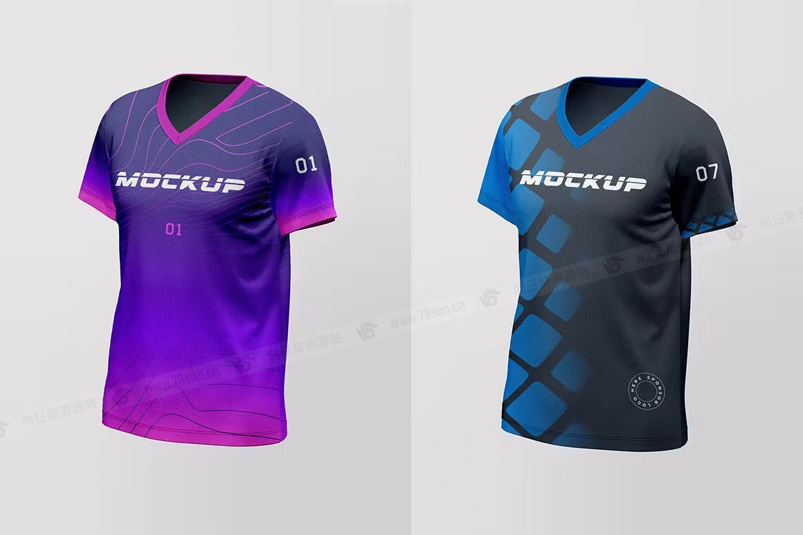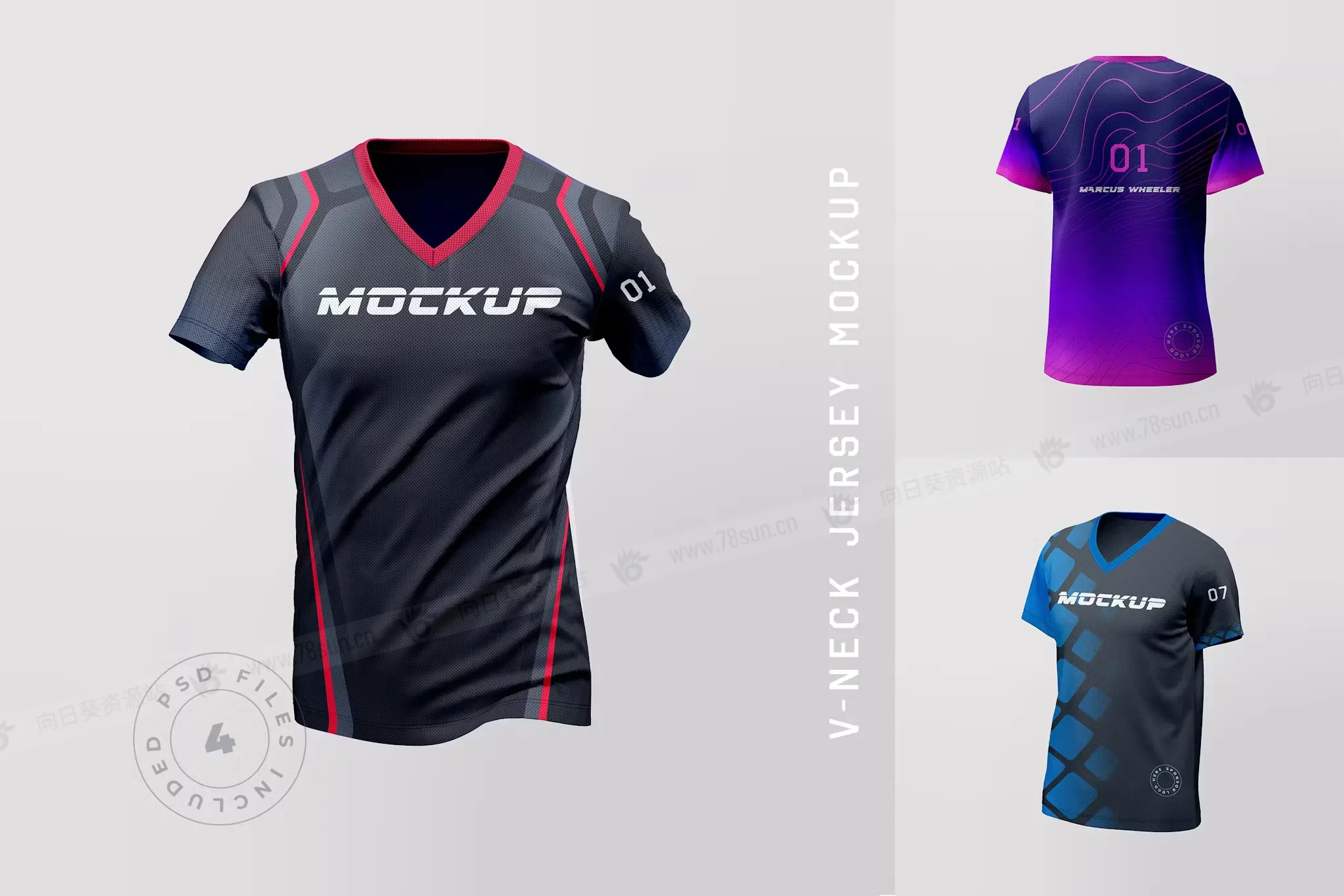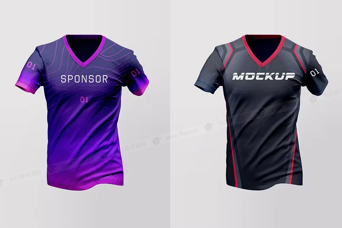 男士鸡心V领运动T恤服装品牌VI效果图展示智能贴图psd设计样机,可以选择改变袖子和衣领的颜色,使其具有独特的外观。 该模型包括衬衫的正面、正面、背面和四分之三视图。所有的编辑过程都是通过智能对象直接进行的,所有的图层都组织得很好,以方便您。 纹理质量高,让您可以放大并拍摄设计的特写图像。