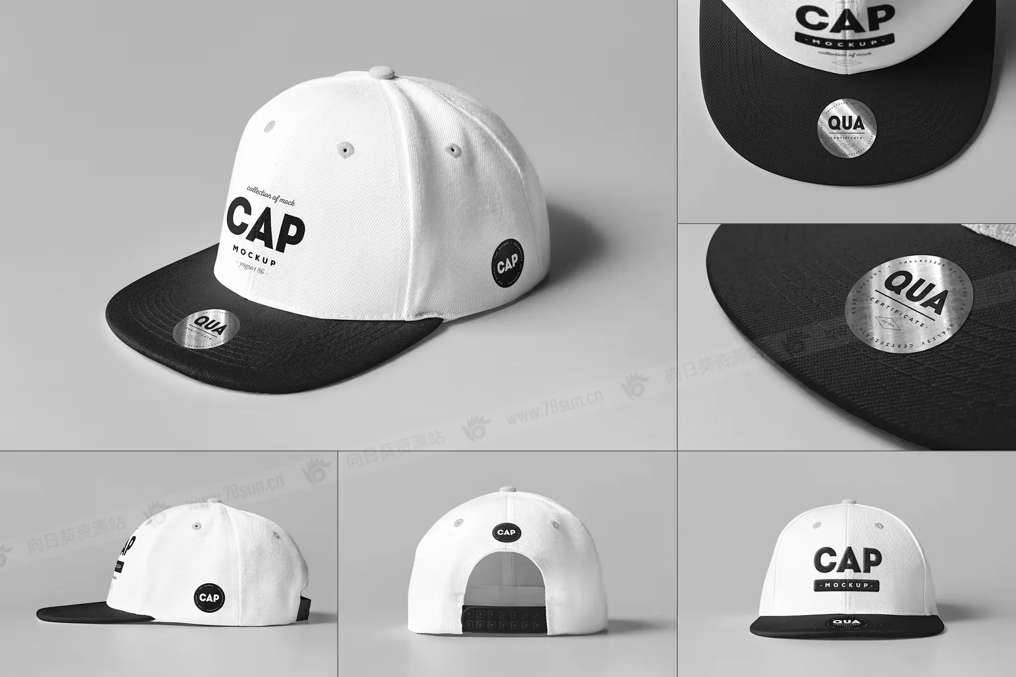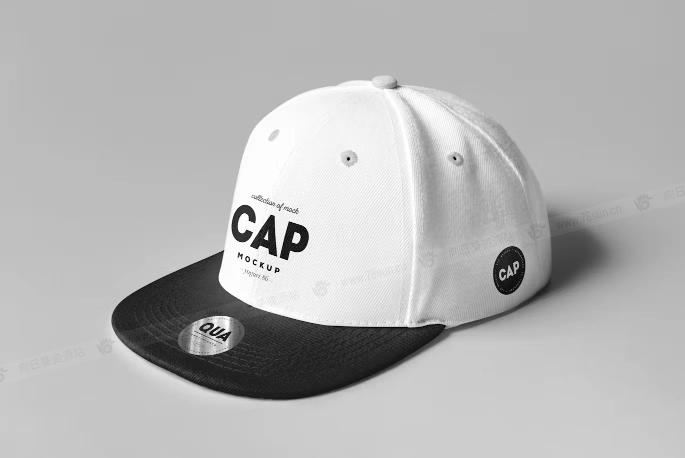 帽檐棒球帽子服装品牌VI效果图展示智能贴图psd设计样机,易于编辑的模型,它包含创建项目逼真外观所需的一切。保证了明暗设计的良好外观,