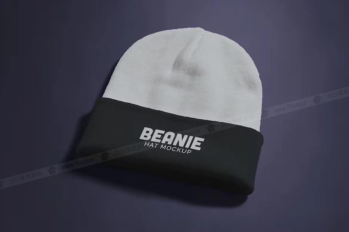 无檐毛线帽子服装品牌VI效果图展示智能贴图psd设计样机,将您自己的徽标、图像或设计上传到帽子上,并自定义颜色以创建您自己的品牌帽子设计。PSD 文件组织良好,允许您使用 Adobe Photoshop 通过智能对象快速编辑。这个模型非常容易定制,你可以改变所有内容,包括高光、阴影和背景。