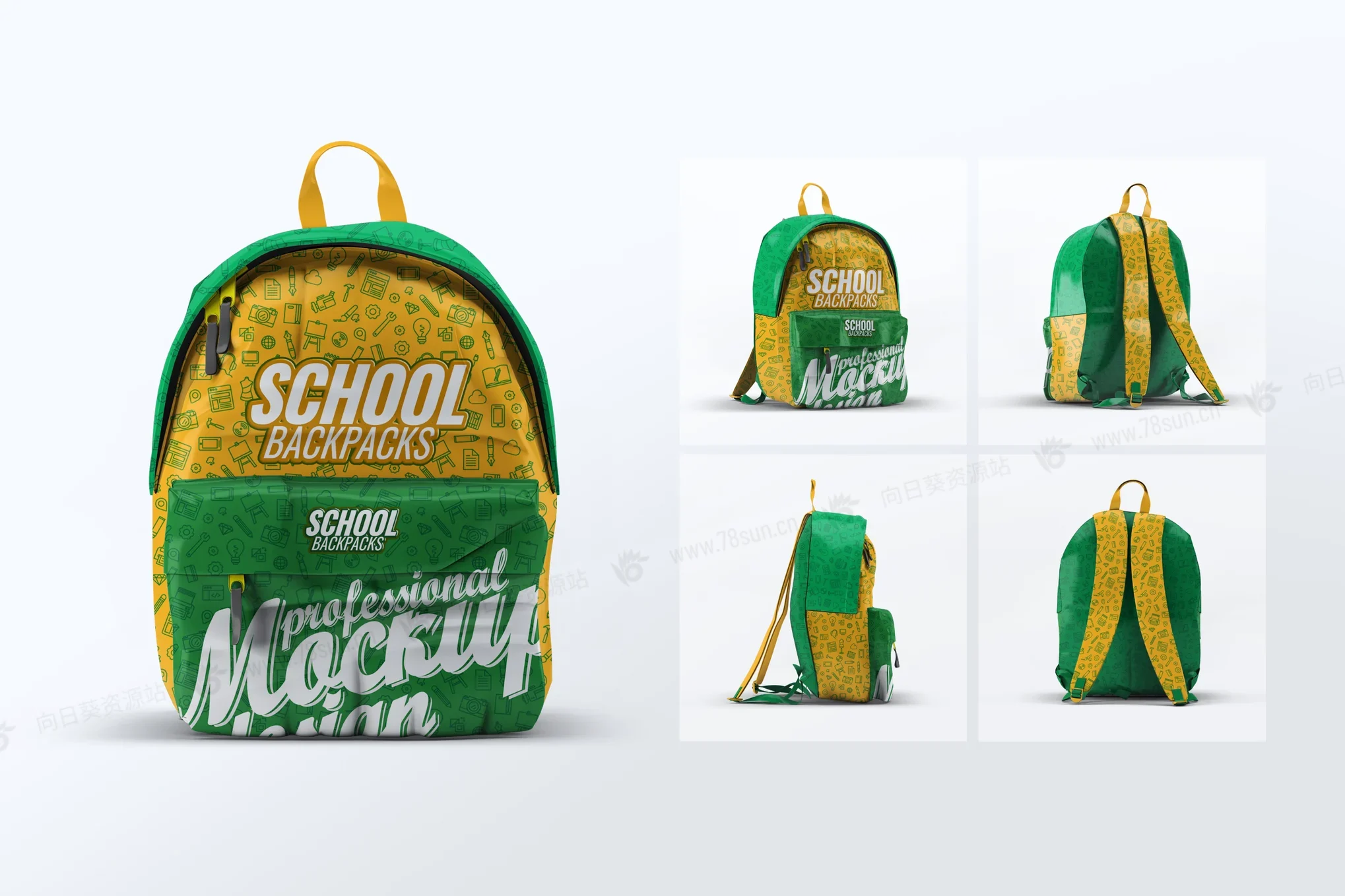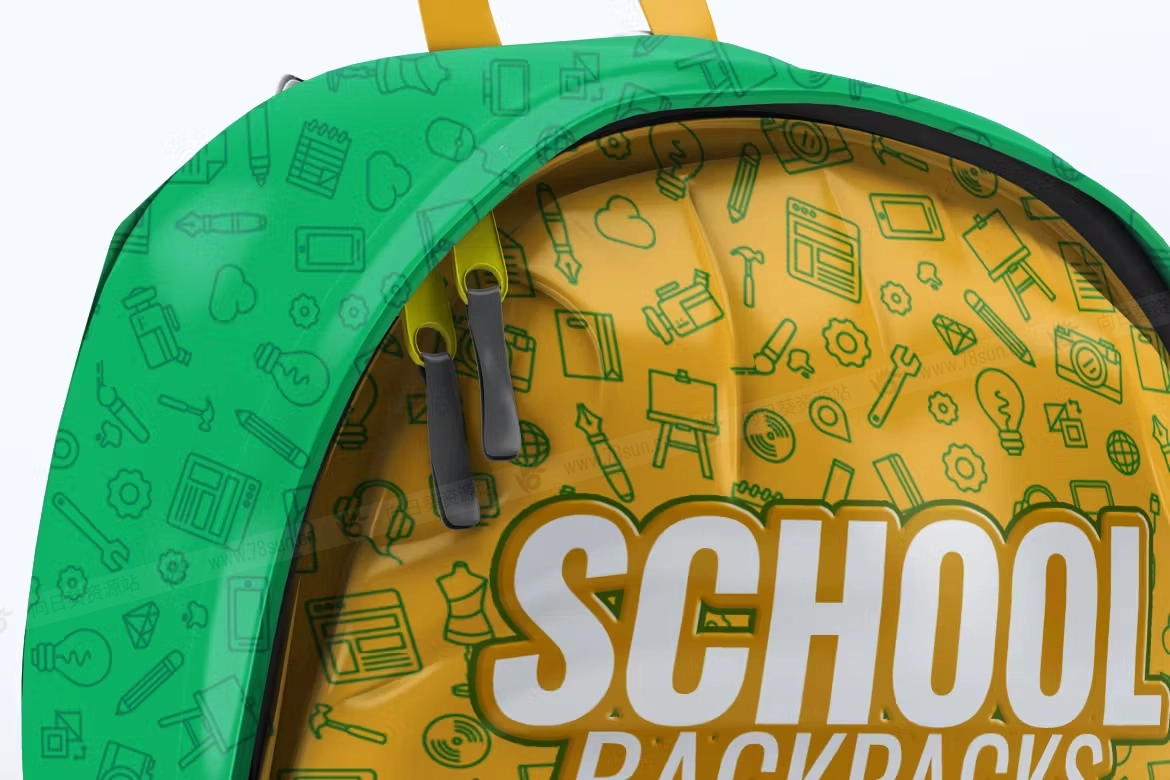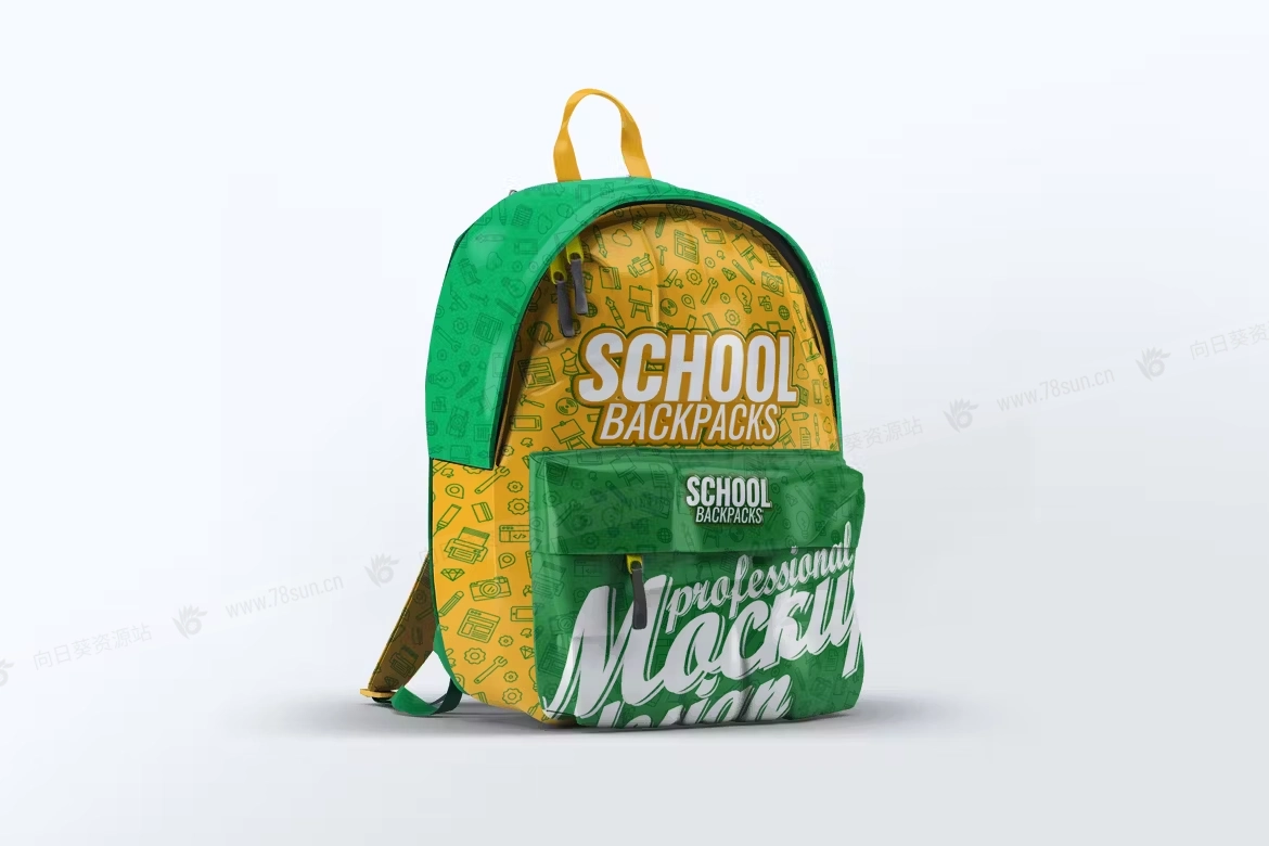 学校学生背包书包品牌VI效果图展示智能贴图psd设计样机,