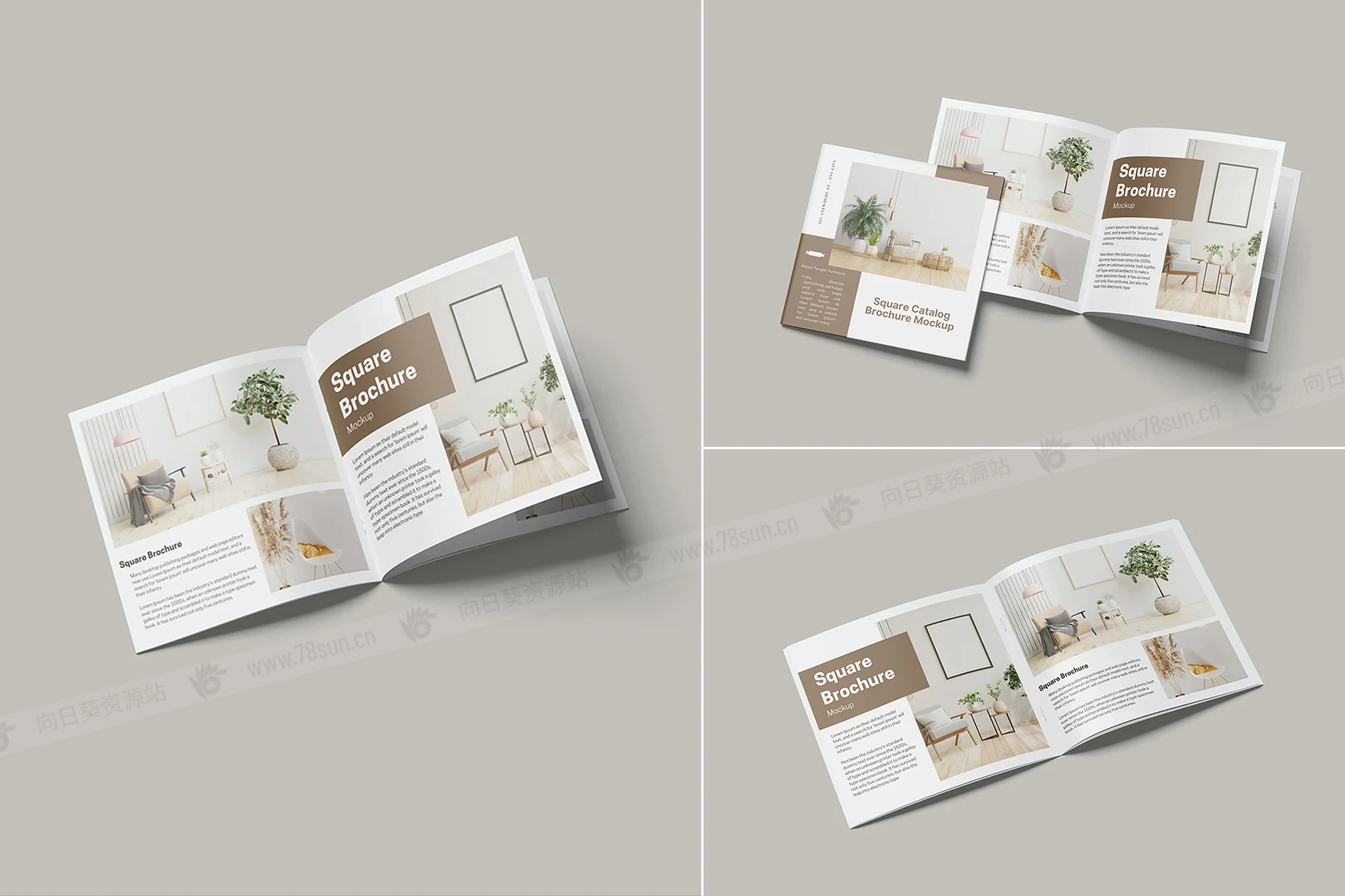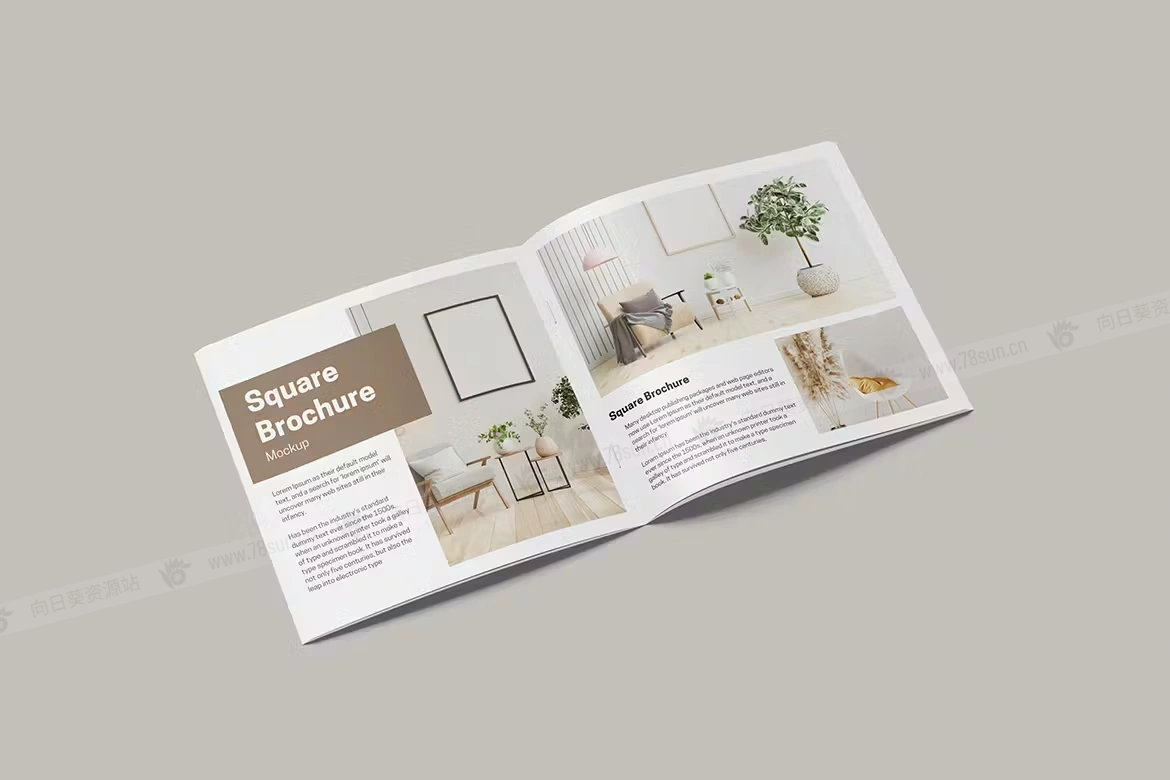 方形宣传册小册子封面内页效果图展示智能贴图psd设计样机,使用智能对象功能,这意味着您可以在几秒钟内轻松快速地更改当前设计。