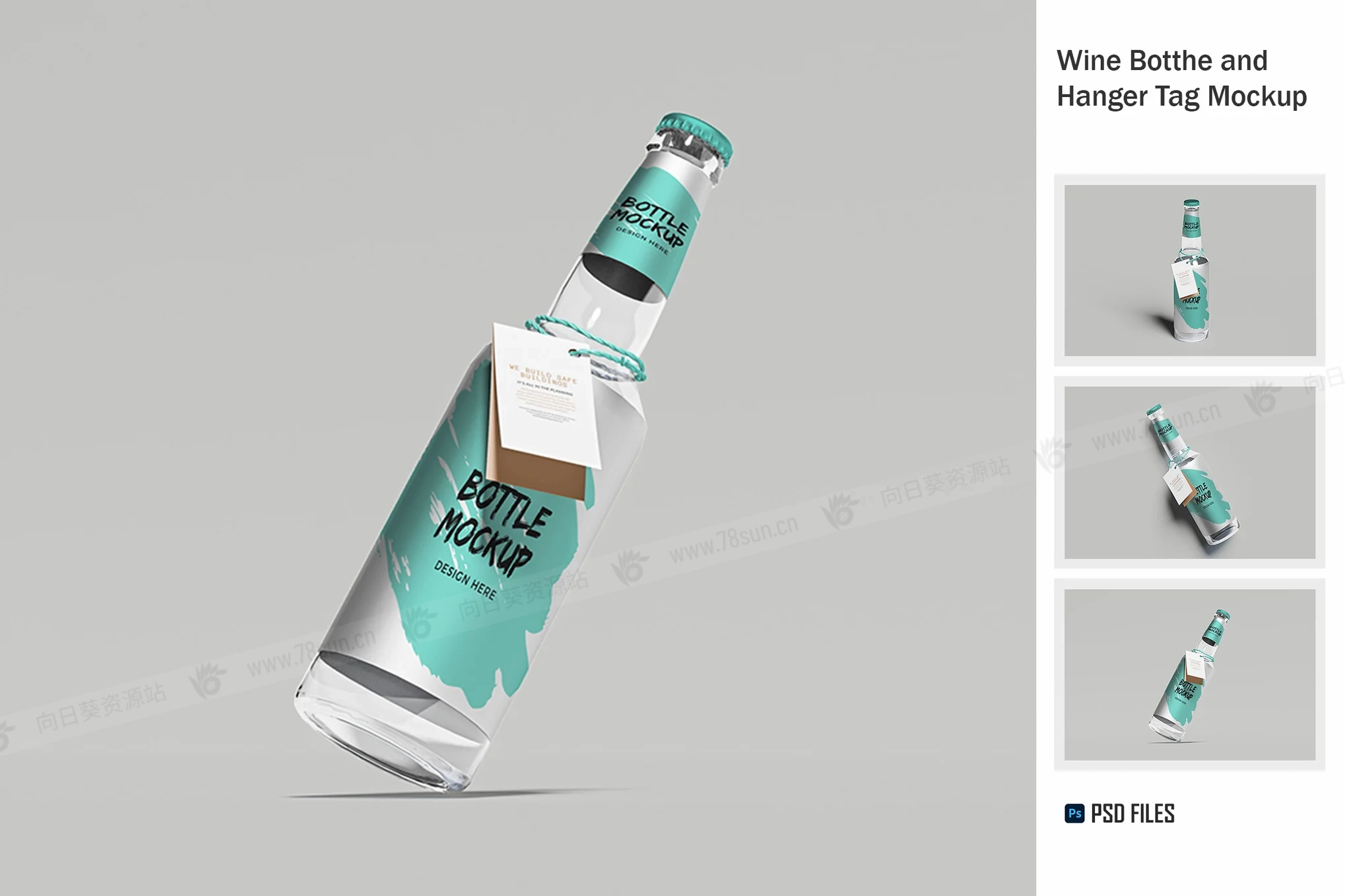 带标签玻璃酒瓶品牌VI效果图展示智能贴图psd设计样机,此模型包括 3 个文件,带有分层良好的 PSD 文件 并且该模型还使用智能对象功能,这意味着您可以轻松快速地更改电流 只需几秒钟,就可以用您自己的方式进行设计。