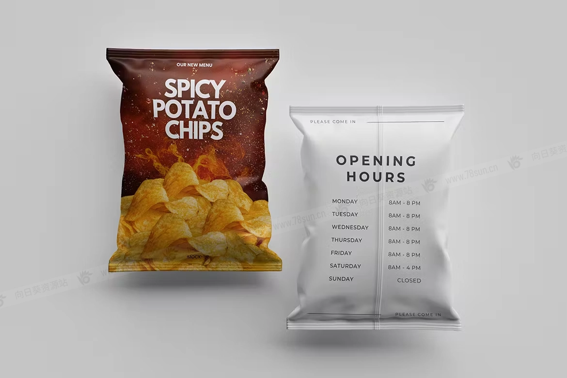 零食薯片膨化食品包装袋VI效果图展示智能贴图psd设计样机,此模型包括 03 个文件,具有分层良好的 PSD 文件 并且该模型还使用智能对象功能,这意味着您可以轻松快速地更改电流 只需几秒钟,就可以用您自己的方式进行设计。