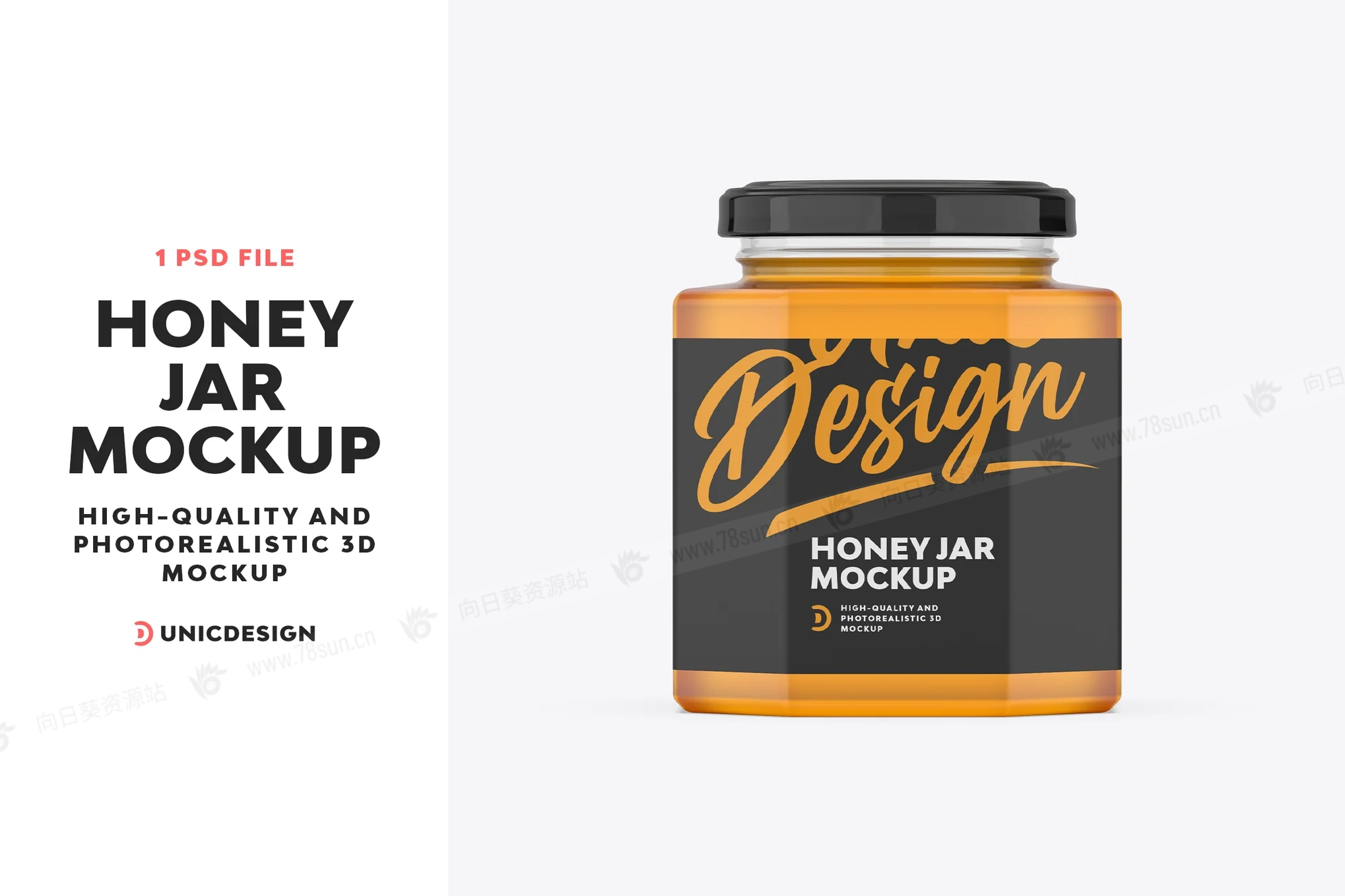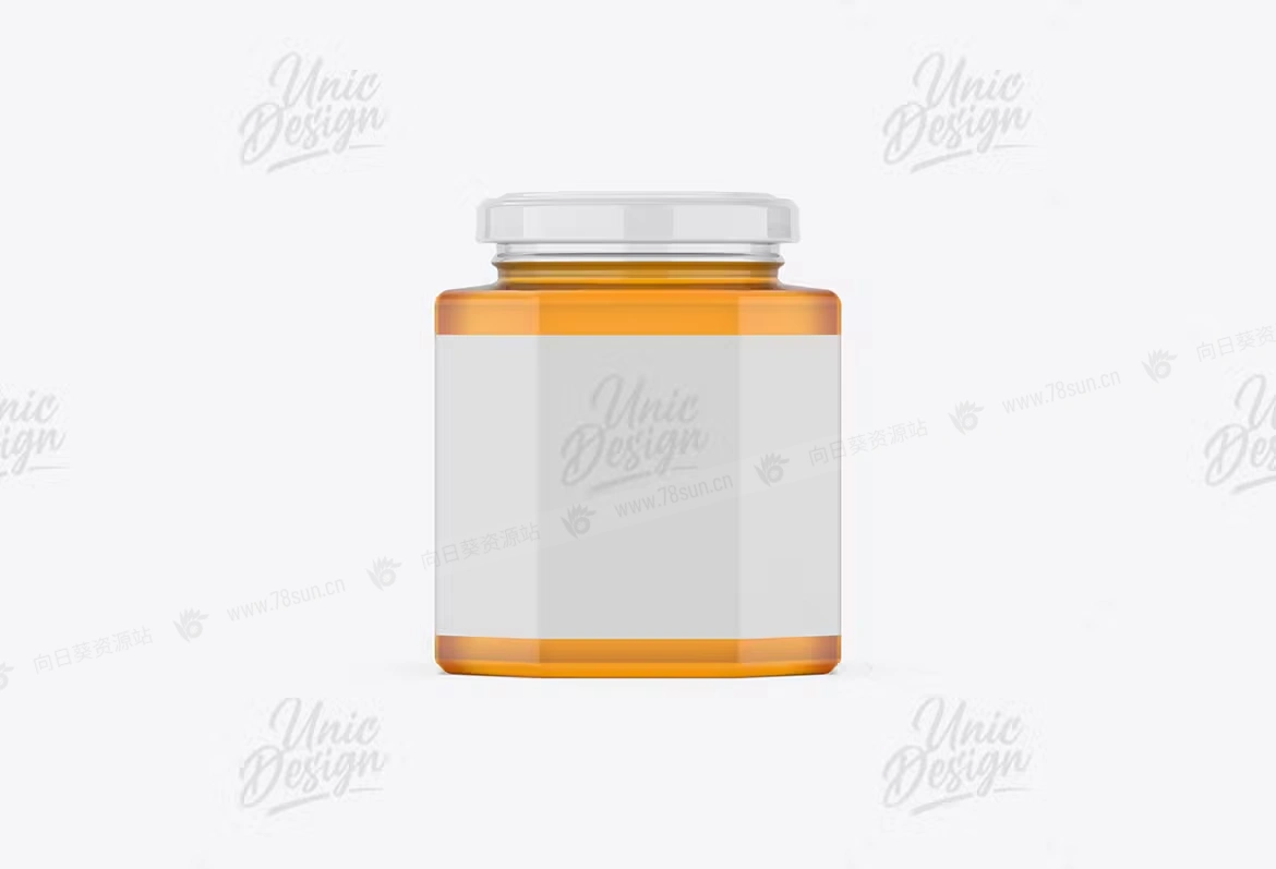 食品蜂蜜玻璃罐品牌VI效果图展示智能贴图psd设计样机,只需使用 Photoshop 智能对象单击一下即可放置您的设计。该模型是完全分层和可自定义的,因此您可以进行任何更改。每个元素都是单层。您可以更改/删除背景,您可以更改任何颜色,调整或删除阴影和反射,