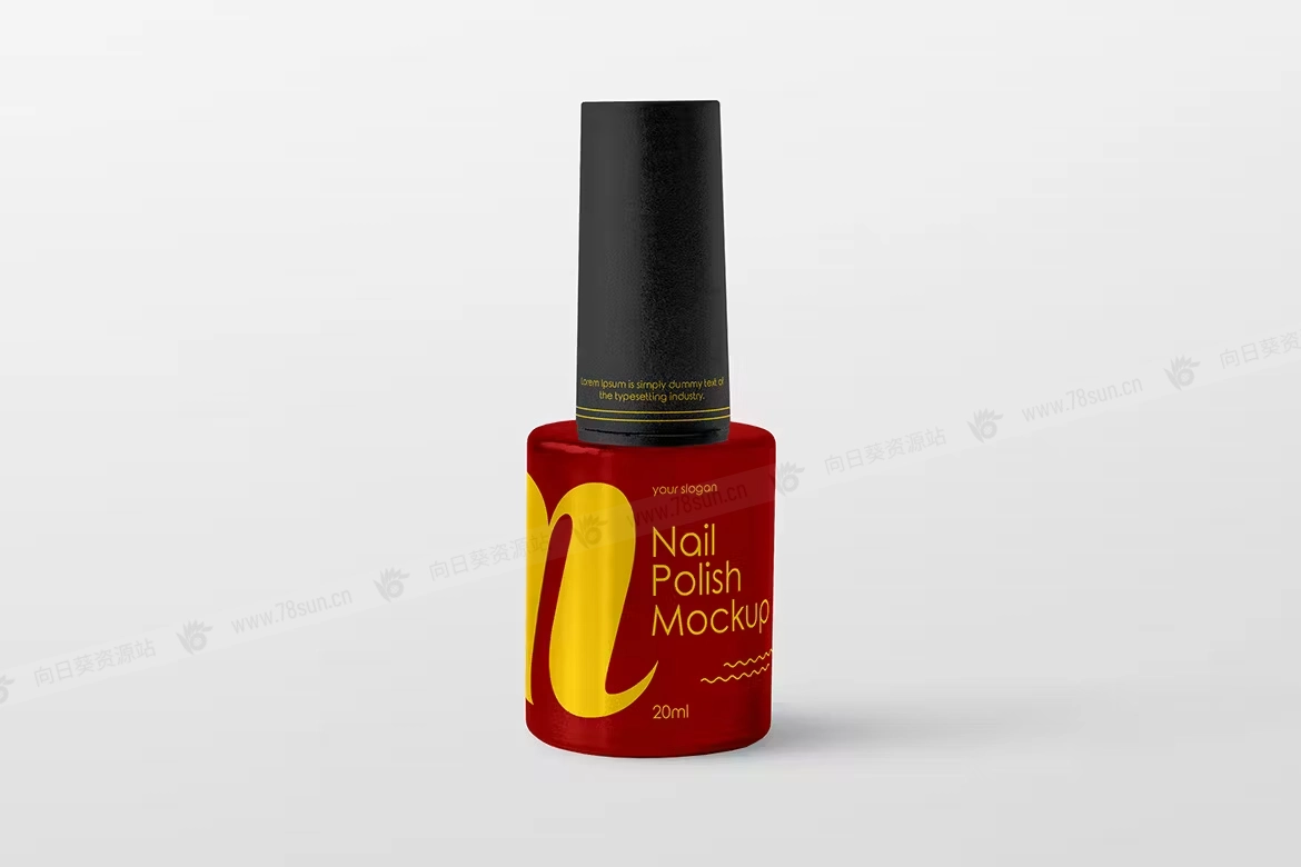 指甲油玻璃瓶品牌VI效果图展示智能贴图psd设计样机,展示您的徽标、品牌等。毕竟,它们是以高分辨率制作的。智能对象可以节省大量时间。只需在智能对象上单击几次,添加您自己的图形并保存结果。