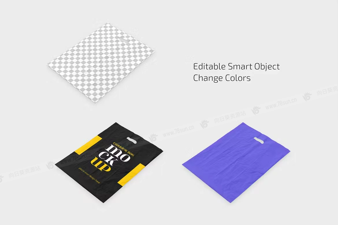 模切手柄塑料手提袋品牌VI效果图展示智能贴图PSD设计样机,展示您的徽标、品牌等。毕竟,它们是以高分辨率制作的。智能对象可以节省大量时间。只需在智能对象上单击几次,添加您自己的图形并保存结果。
