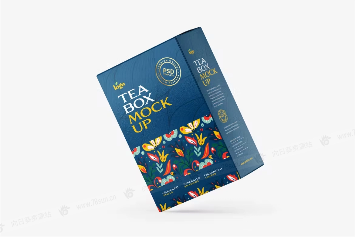 茶叶饼干零食包装纸盒品牌VI效果图展示智能贴图psd设计样机,只需点击几下即可创建完整的专业包装设计展示。只需在 PSD 文档中使用智能对象将元素替换为您的设计并保存它们。
