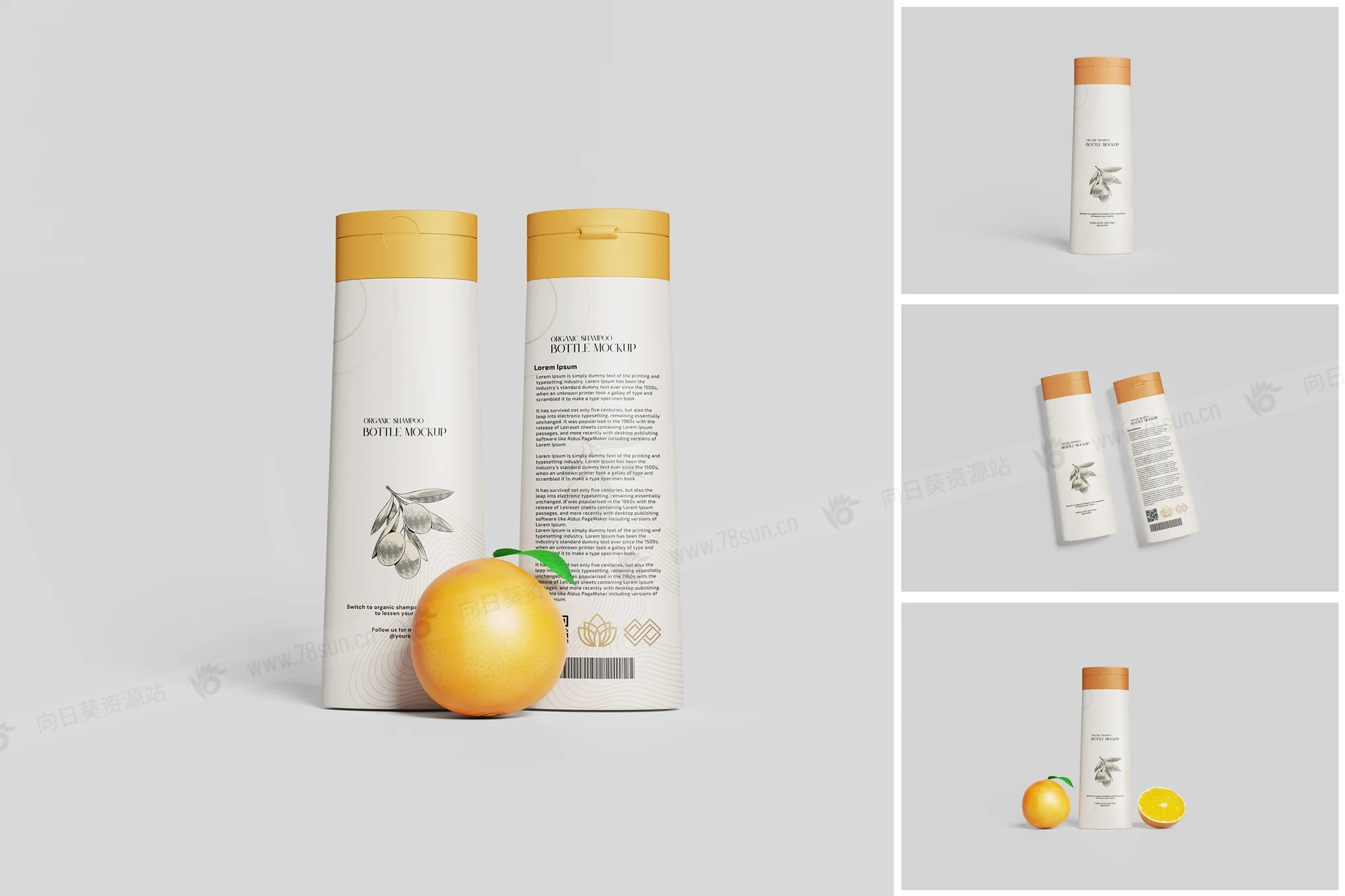挤压翻盖洗发水塑料瓶品牌VI效果图展示智能贴图psd设计样机,使用智能对象轻松替换您的设计,双击智能图层,复制并粘贴您的图稿,保存,您就完成了!