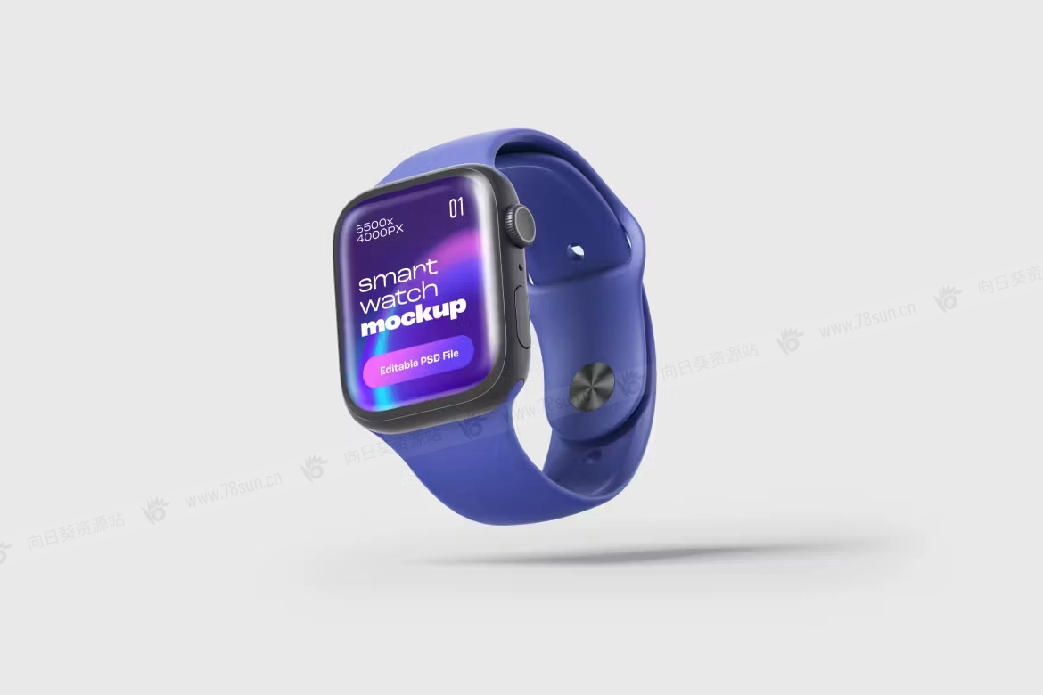 Apple Watch 8 样机套装,具有 4k 背景和时尚设计。该模型可用于智能手表,UI设计,应用程序设计和其他界面设计。