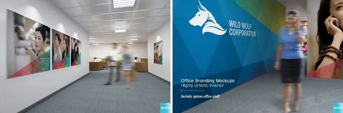 - 在墙壁、玻璃和徽标模拟 3D 上展示艺术品