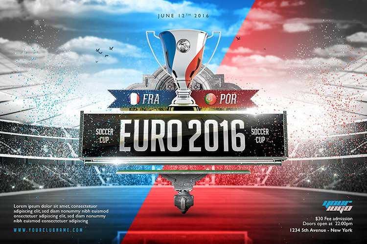欧洲杯体育赛事高分辨率可打印印刷photoshop宣传海报设计模板