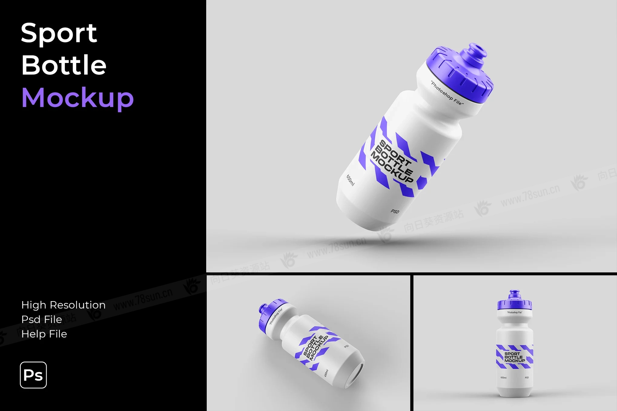 运动塑料瓶水瓶品牌VI效果图展示智能贴图psd设计样机,