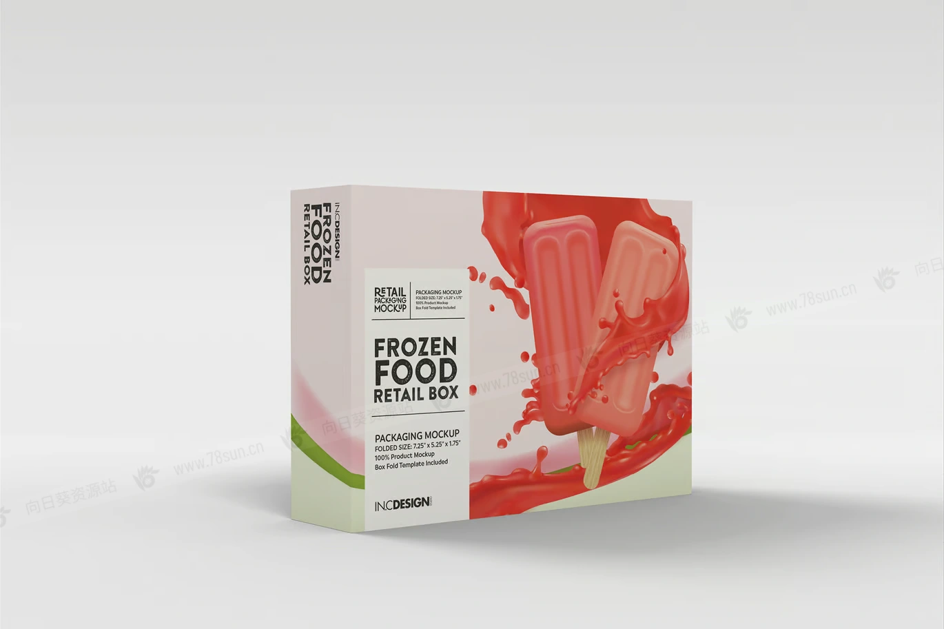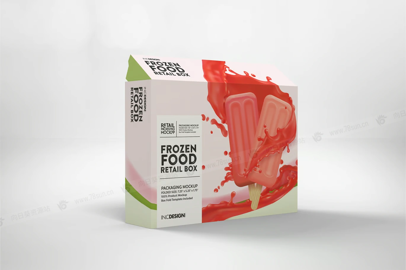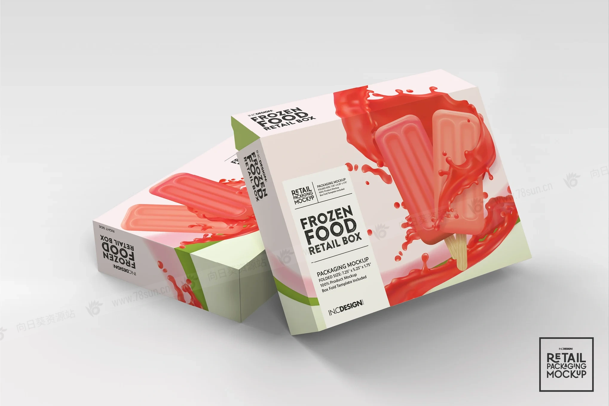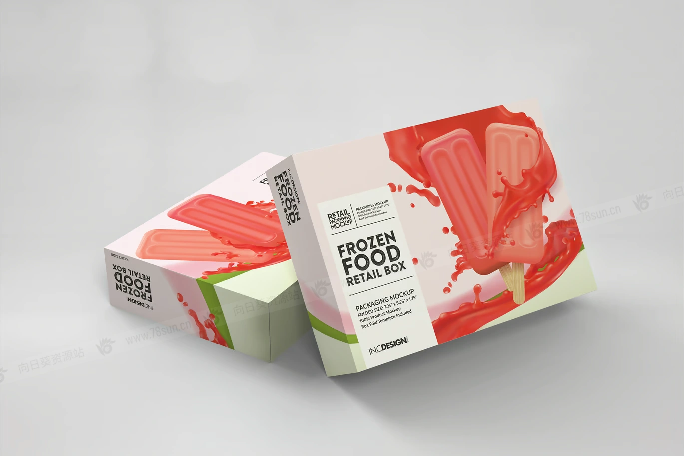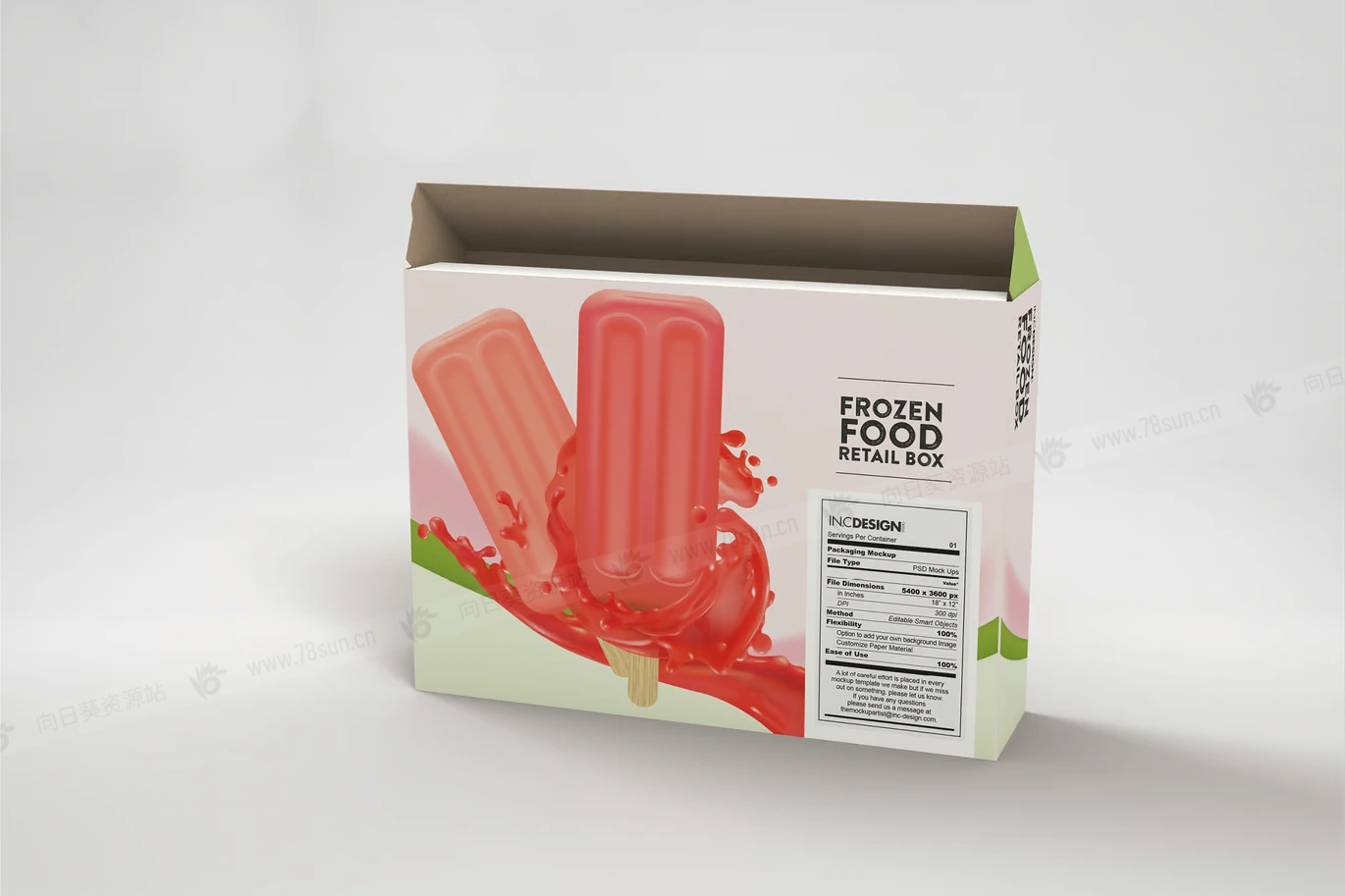 冷饮冷冻食品包装纸盒品牌VI效果图展示智能贴图psd设计样机,