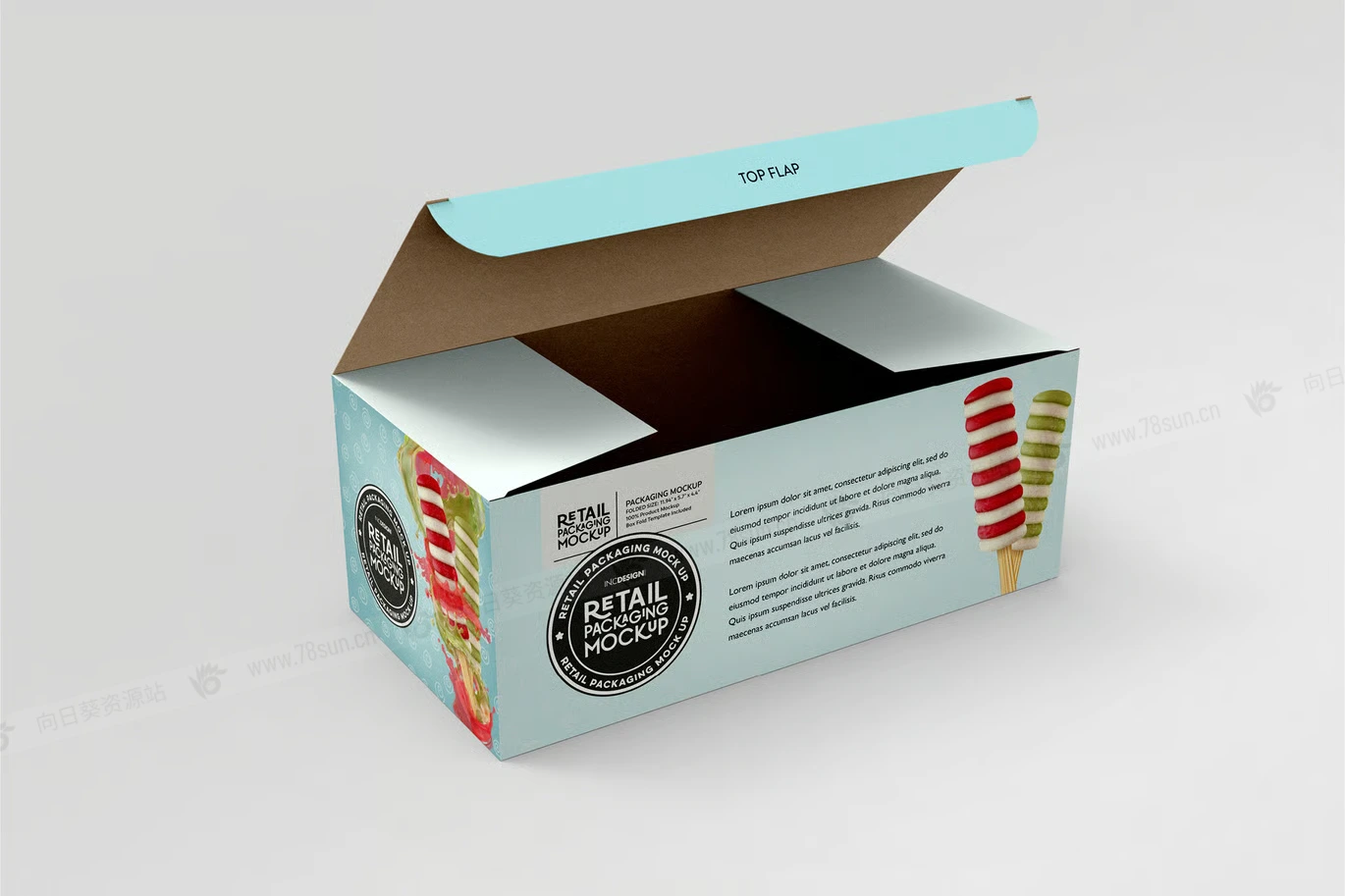 翻盖食品冷饮包装纸盒品牌VI效果图展示智能贴图psd设计样机,