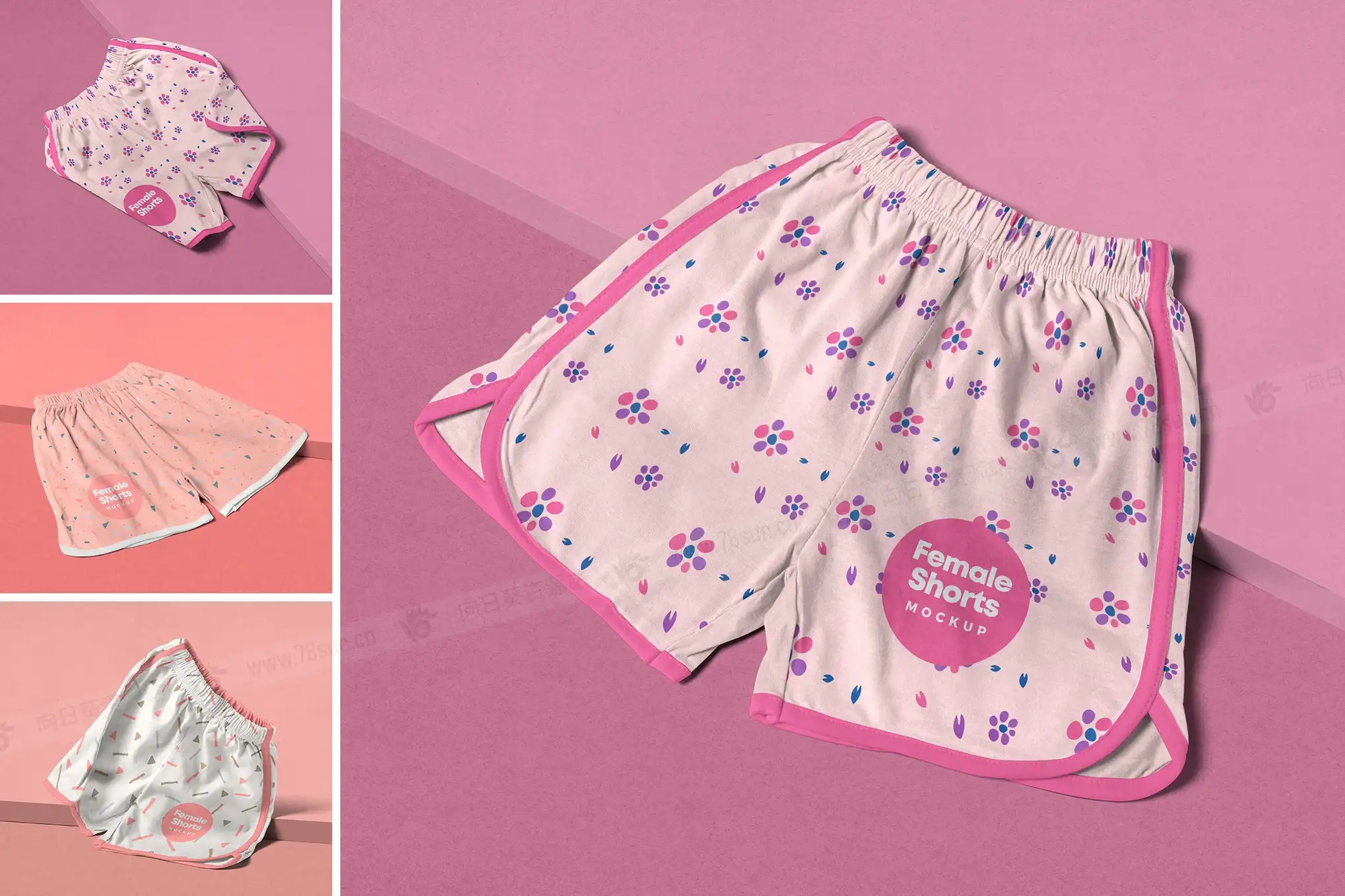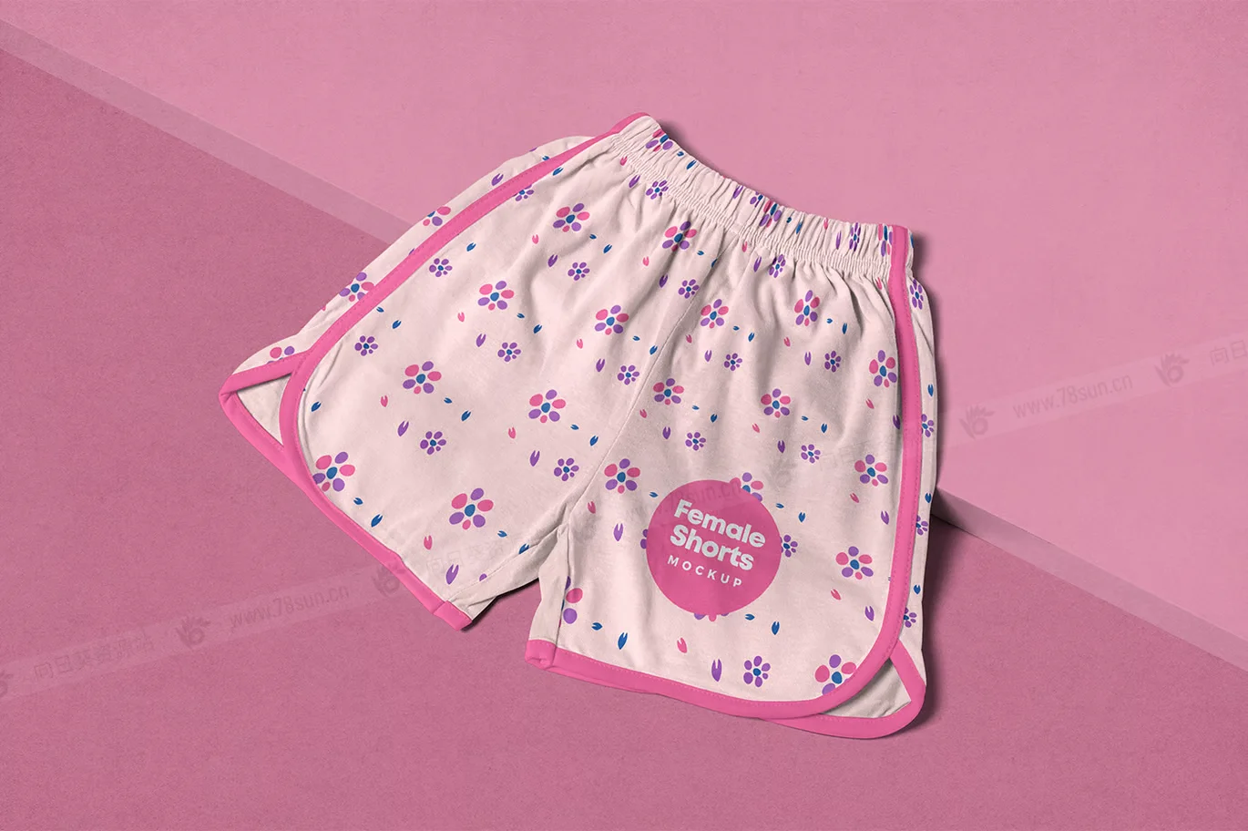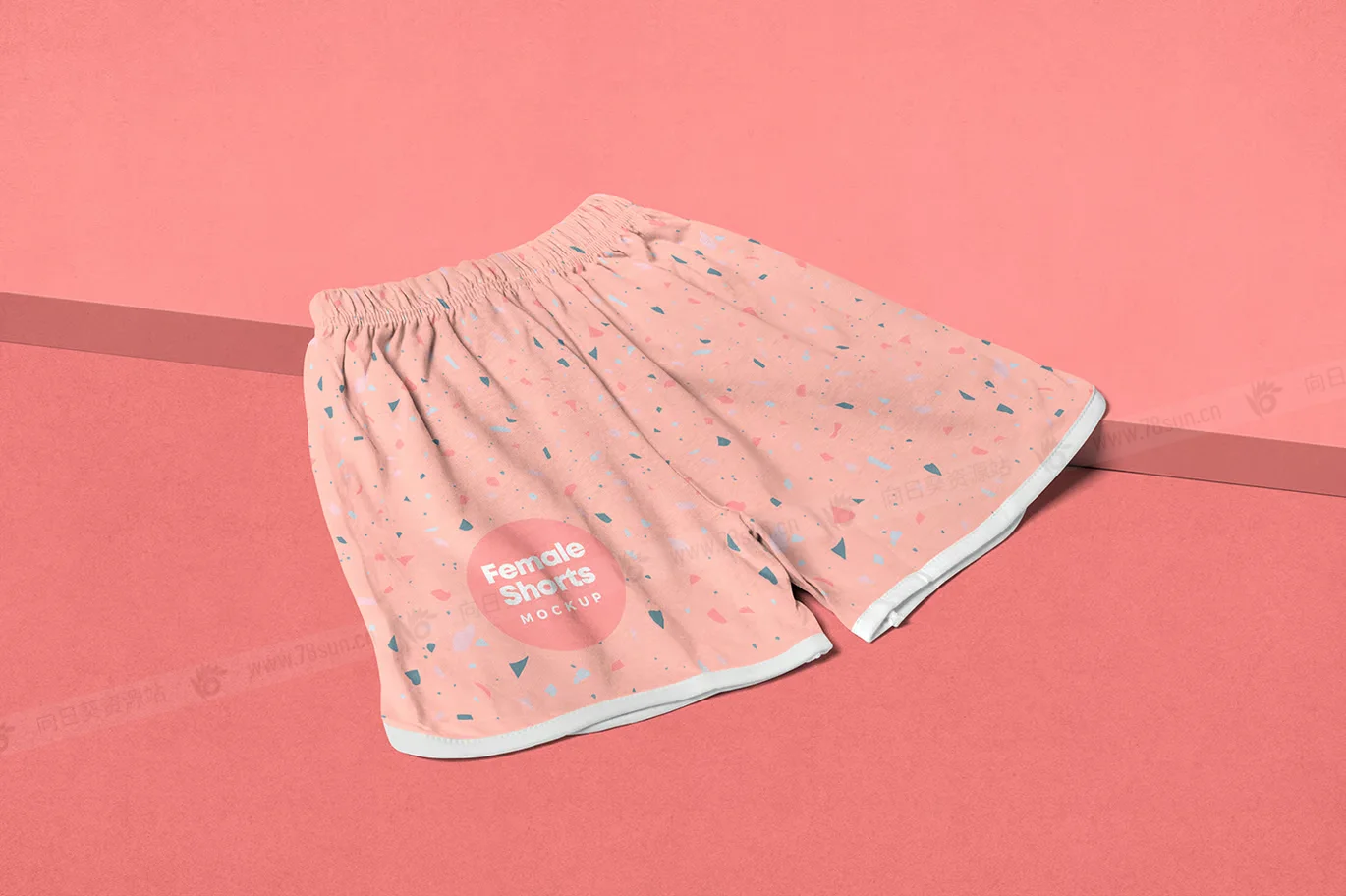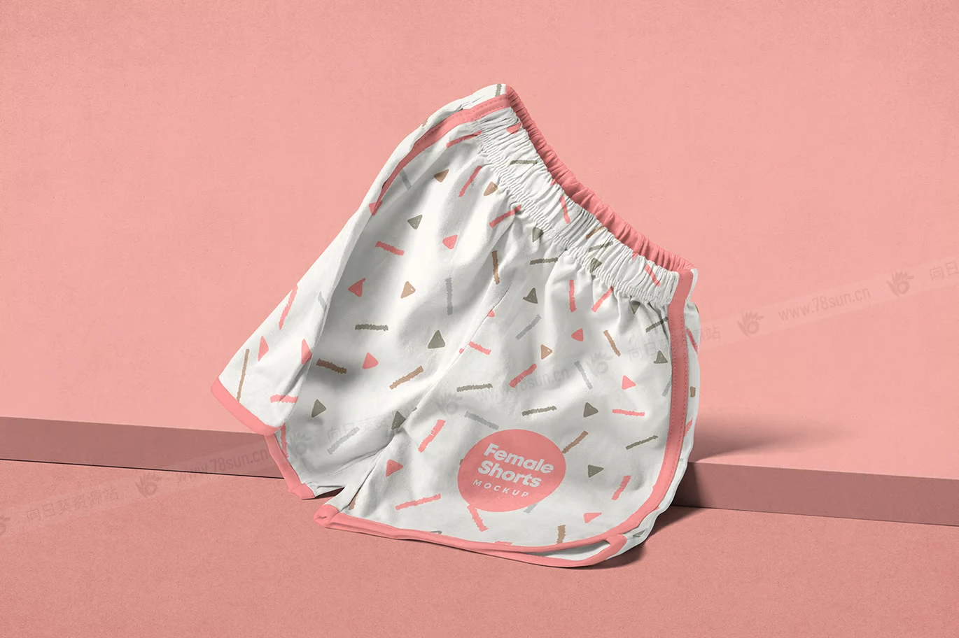 女士短裤平角裤品牌VI效果图展示智能贴图psd设计样机,这个短裤模型提供了一个逼真而详细的视图,让你可以精确地展示你的设计。
