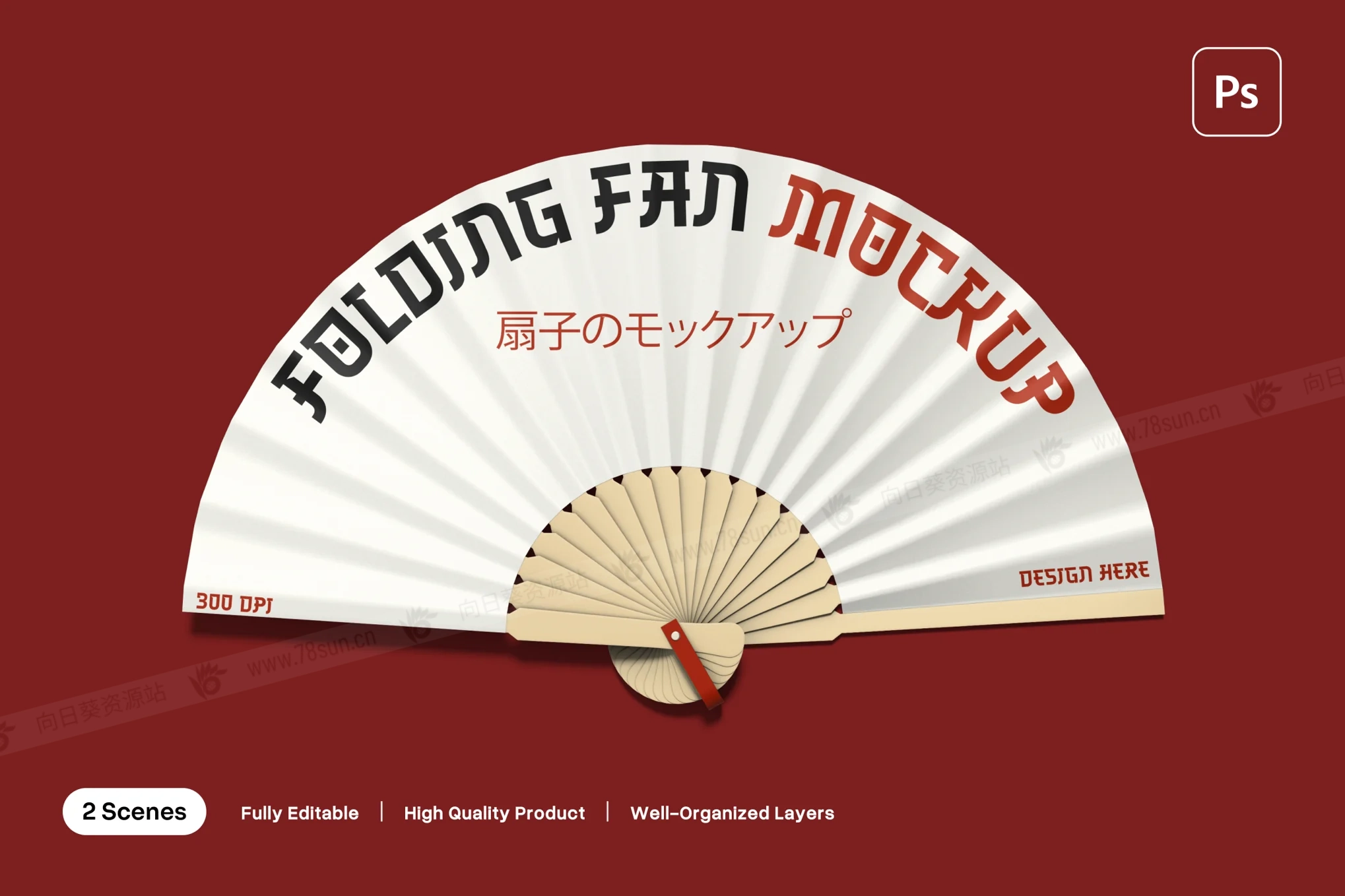 扇子折扇品牌VI效果图展示智能贴图psd设计样机,