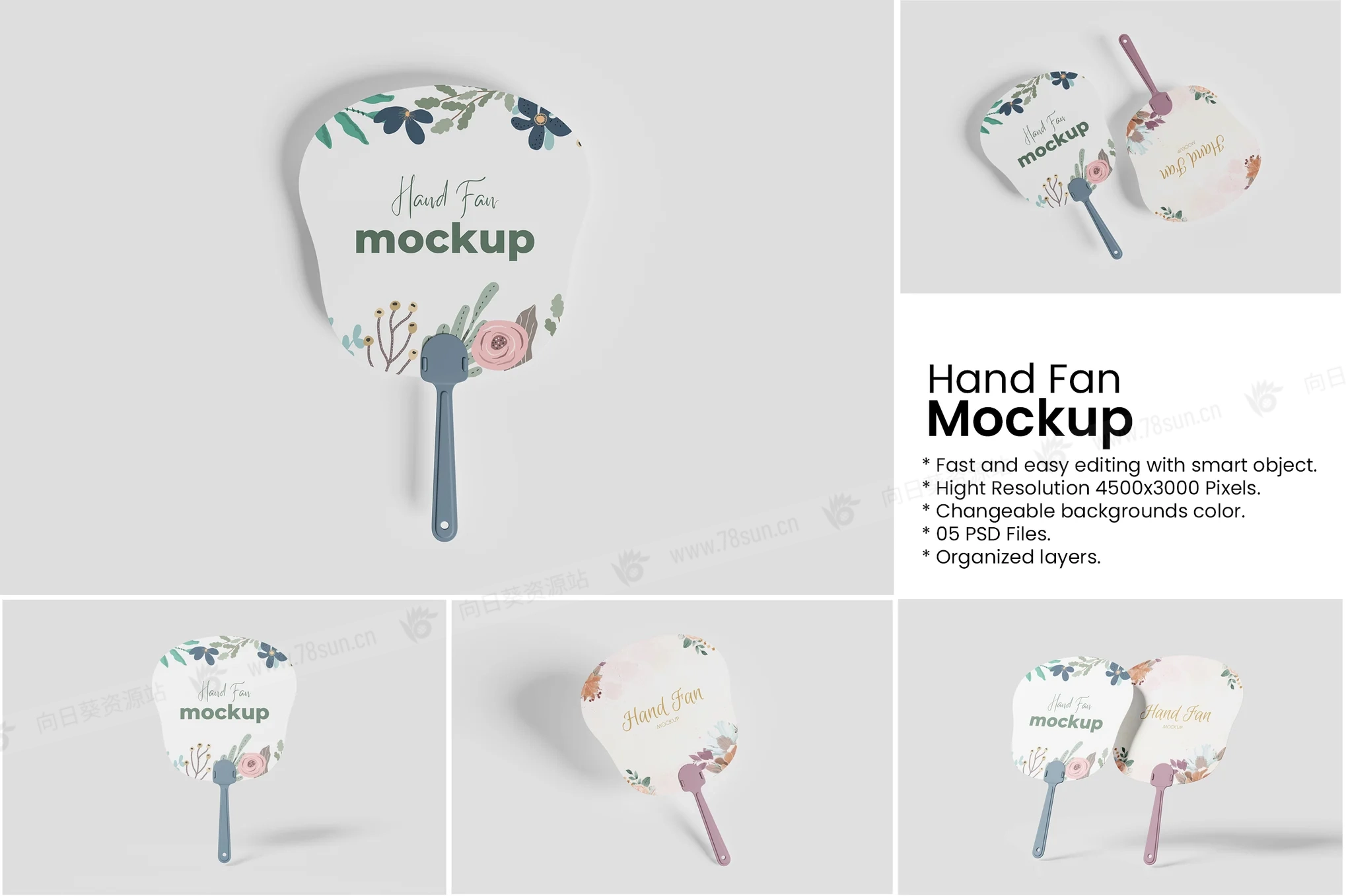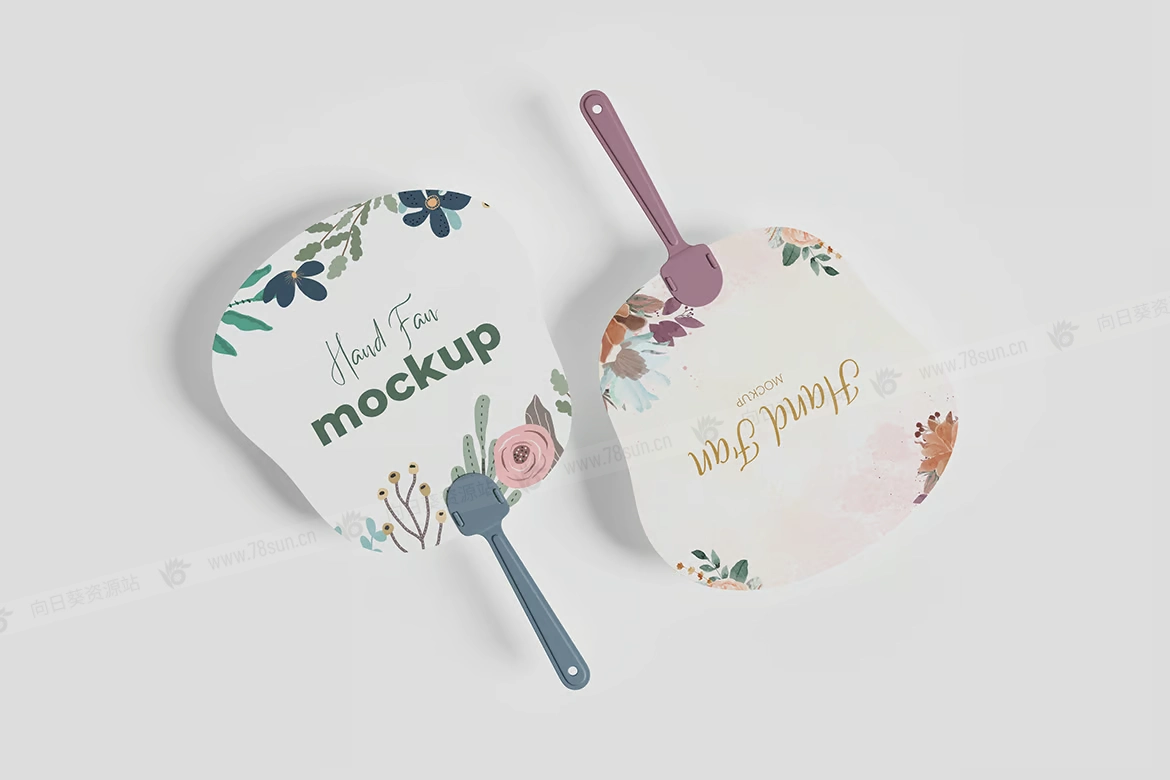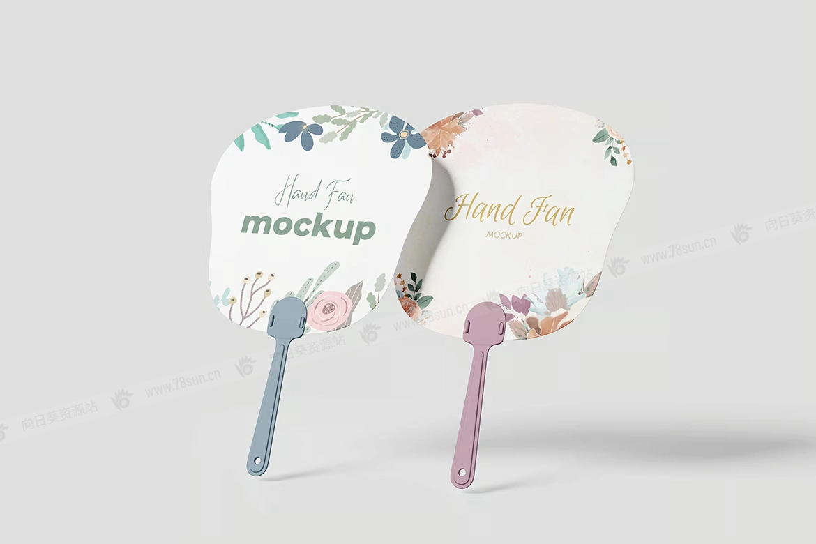扇子塑料扇品牌VI效果图展示智能贴图psd设计样机,使用智能对象轻松替换您的设计,双击智能图层,复制并粘贴您的图稿,保存,