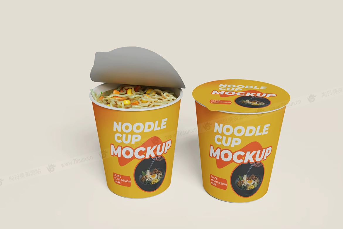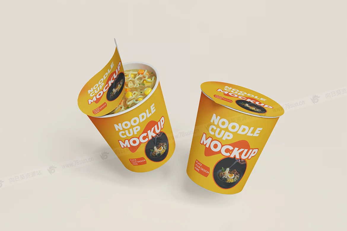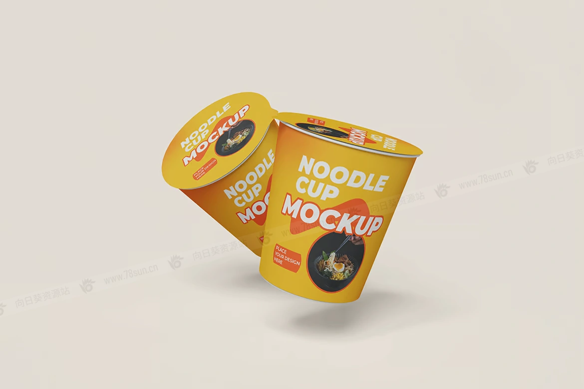泡面方便面纸杯品牌VI效果图展示智能贴图psd设计样机,