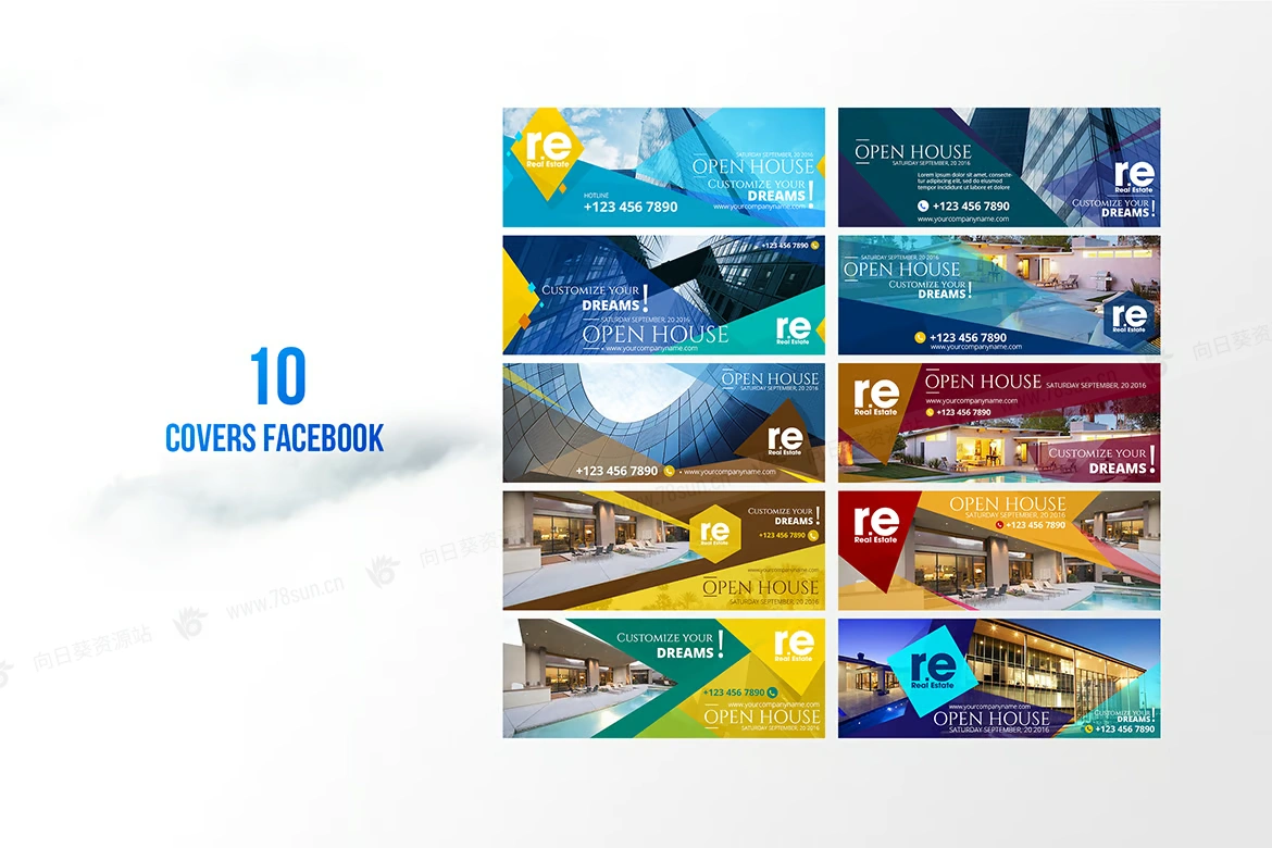 炫彩几何图形酒店房地产广告海报banner背景psd矢量图形素材,它是完全可定制的,因此您有权将其变成您自己的品牌,并具有品牌特色。
