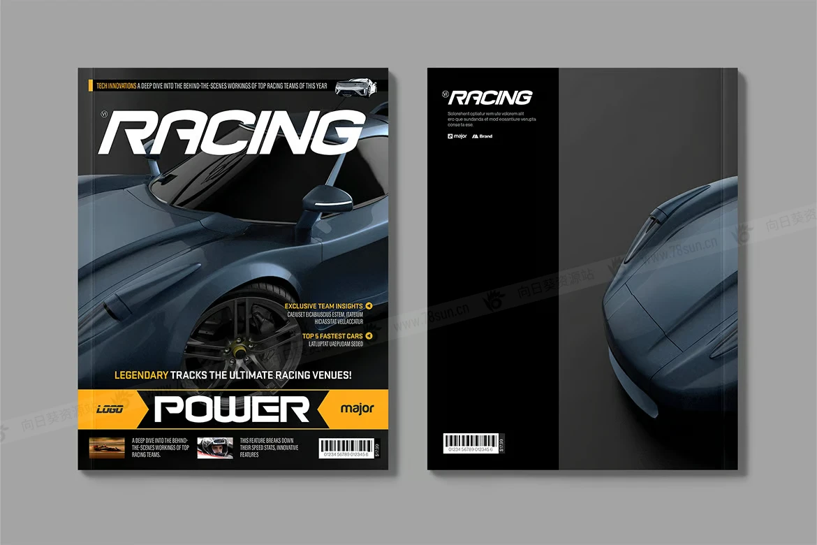 赛车运动汽车宣传手册杂志画册indd设计模板,该模板专为汽车爱好者和专业人士设计。这款双折模板提供 InDesign INDD 和 IDML 格式,提供时尚的布局,非常适合赛车运动小册子、汽车小册子和赛车活动计划。