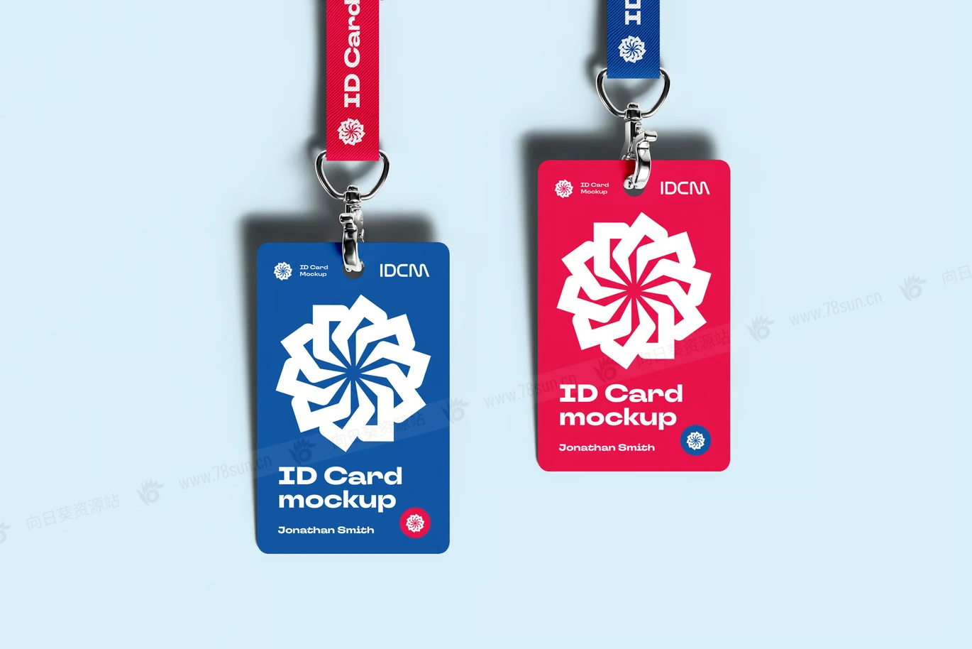 工作证工卡垂直视图VI效果图展示智能贴图psd设计样机,图片和照片仅用于演示目的,不包含在模型文件中