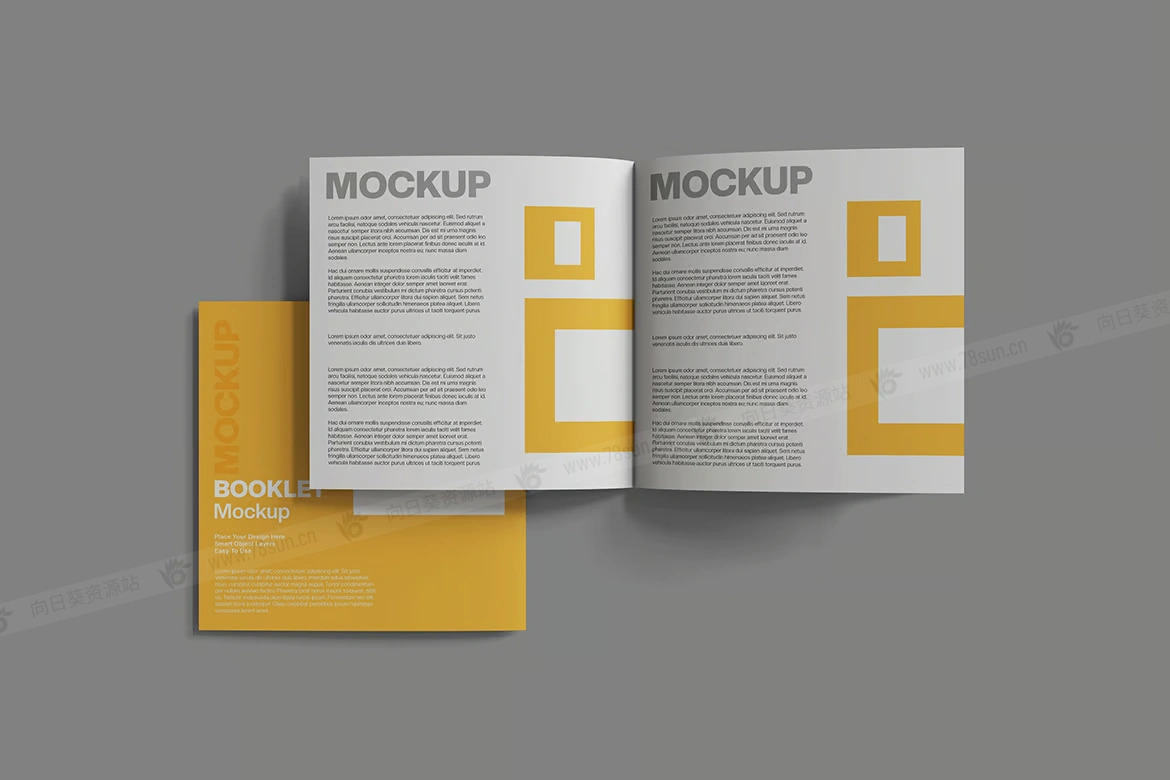 方形宣传册小册子封面内页效果图展示智能贴图psd设计样机,使用智能对象轻松替换您的设计,双击智能图层,复制并粘贴您的图稿,保存,您就完成了!