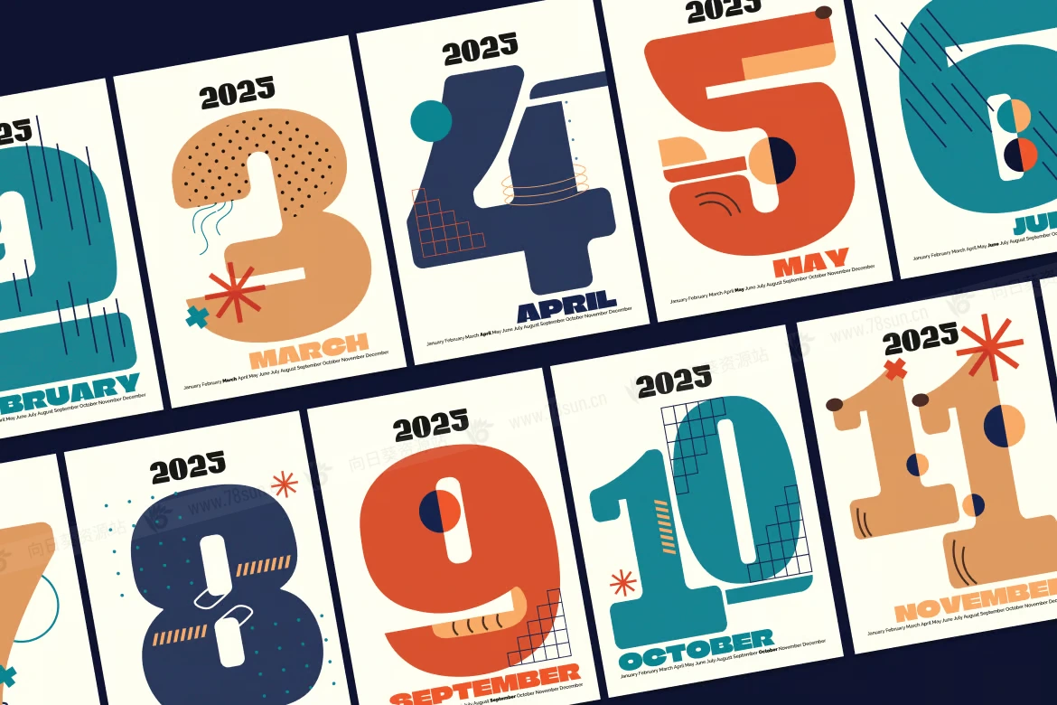 2025年日历台历矢量图形ai设计源文件, *组织良好的图层 *完全可定制 *使用免费字体